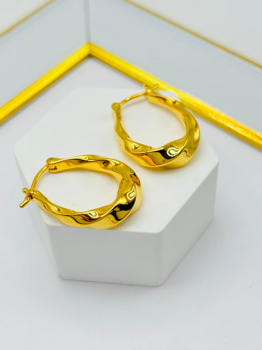 18K Gold Twisted Oval Loop Earrings (Electroform)