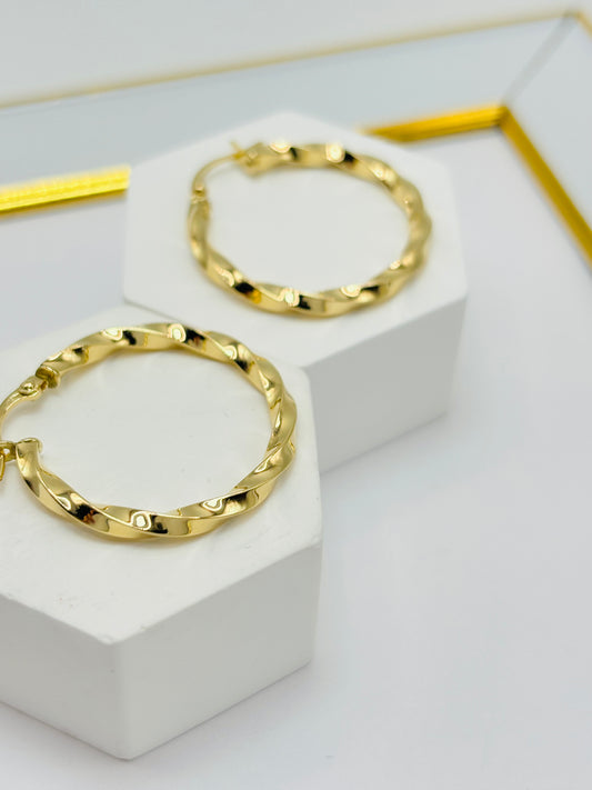 18K Gold Twisted Loop Earrings (Electroform)