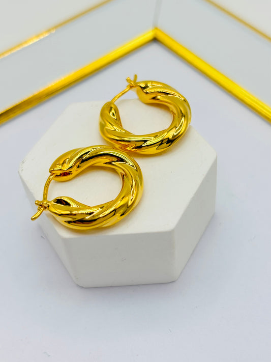 18K Gold Twisted Loop Earrings 26 mm