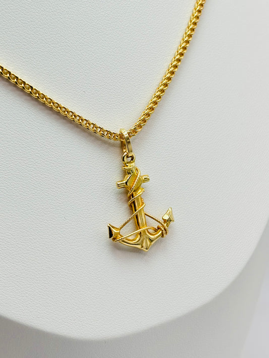 18K Gold Anchor Chain with Jesus Face Pendant Set