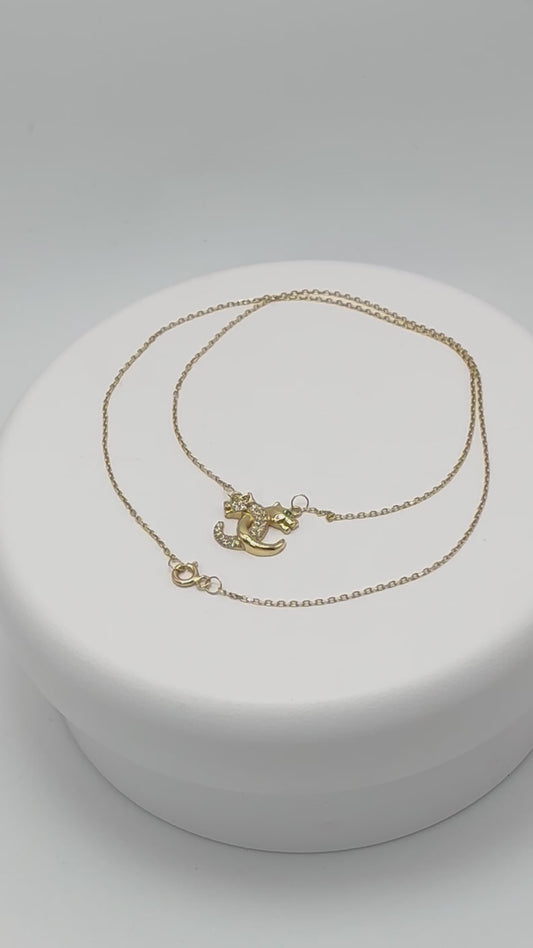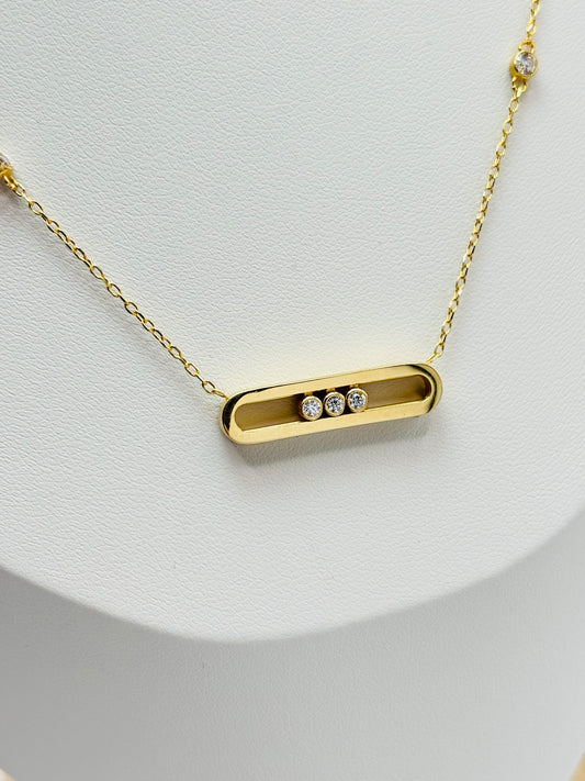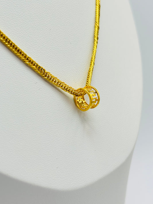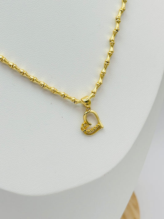 18K Gold Bamboo with Heart Pendant Necklace Set