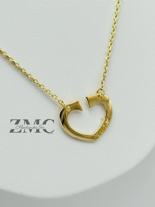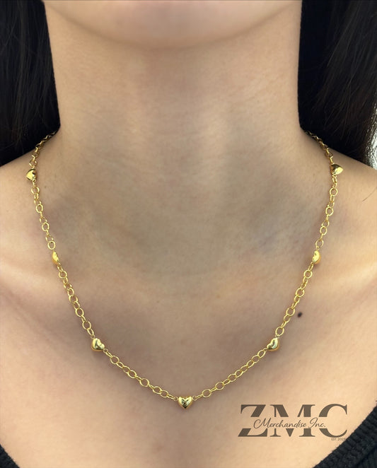 18K Gold Attached Small Heart Station Necklace