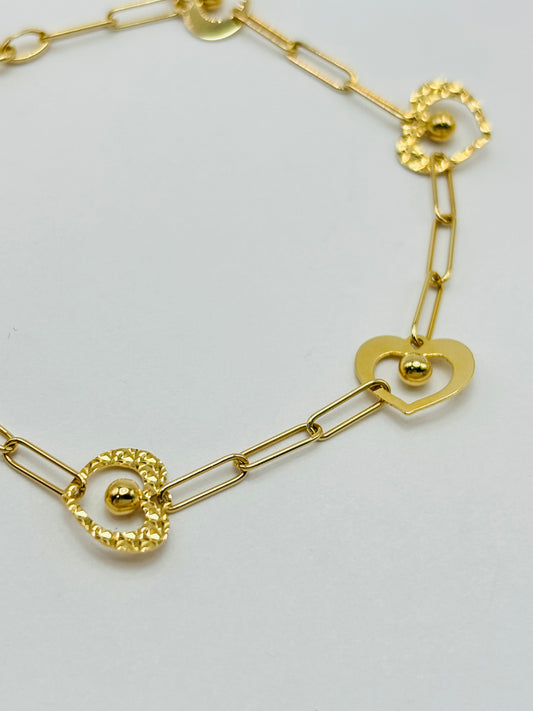 18K Gold Paperclip Heart Attached Bracelet