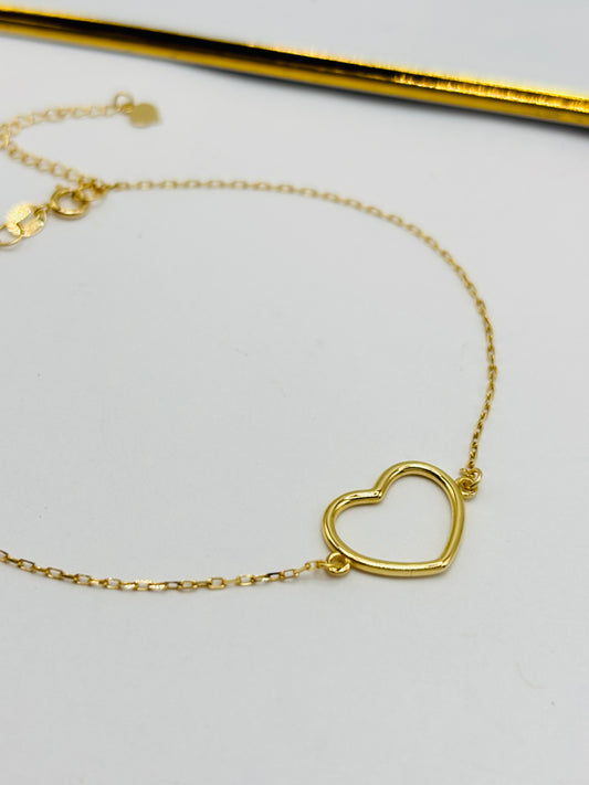 18K Gold Open Heart Attached Bracelet