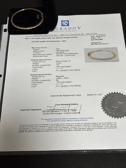 18K Gold Baguette Bangle Natural Diamond 1.00 carat