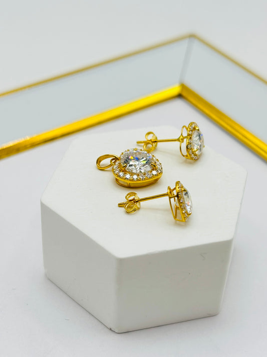 18K Gold Heart Earrings and Pendant Set Moissanite Diamond