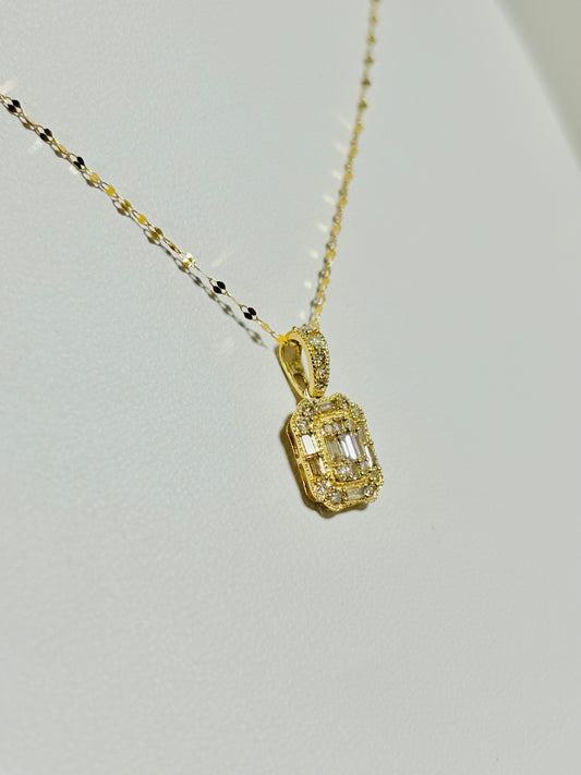 18K Gold Baguette Pendant 0.30ct Natural Diamonds with FREE 18K Gold Chain