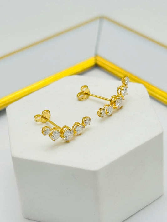 18K Gold Ear Climber Moissanite Diamond Earrings