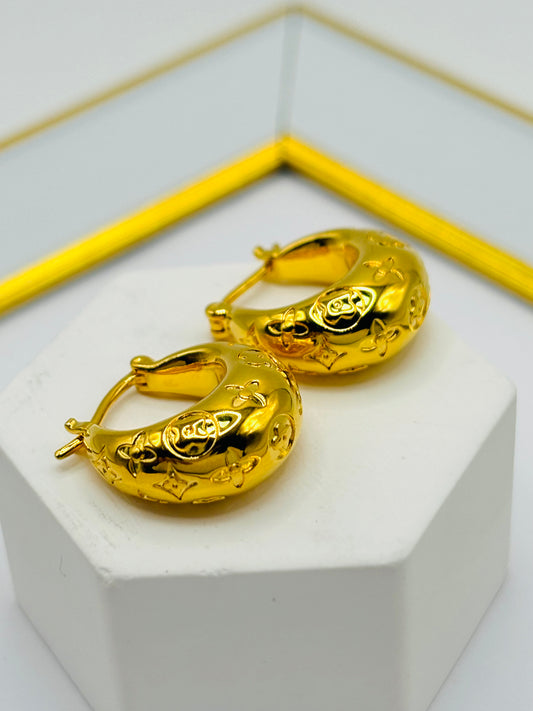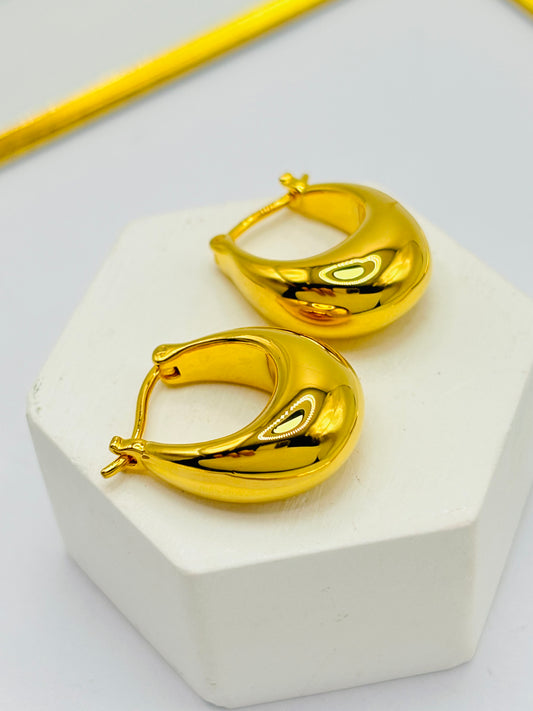18K Gold Plain/Door Knocker Loop Earrings Back to Back Design (Electroform)