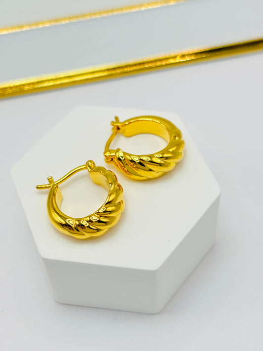 18K Gold Twisted Oval Loop Earrings (Electroform)
