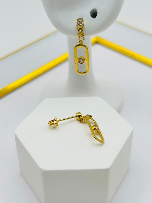 18K Gold Screw Type Heart Dangling Moissanite Diamond Earrings