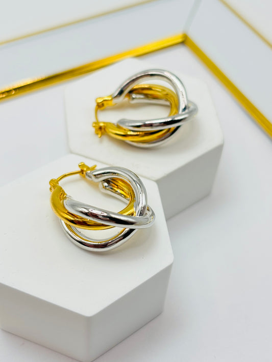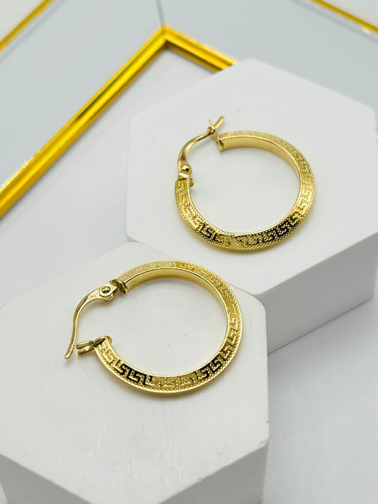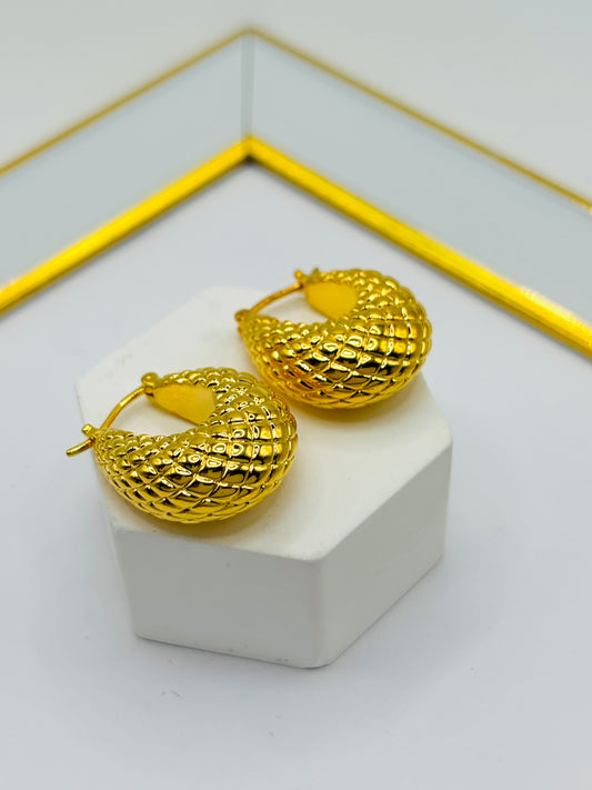 18K Gold Woven Pattern Loop Earrings (Electroform)