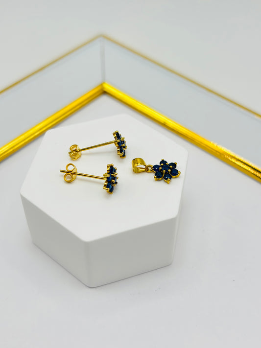 18K Gold Flower Stone Earrings and Pendant Set (Blue)