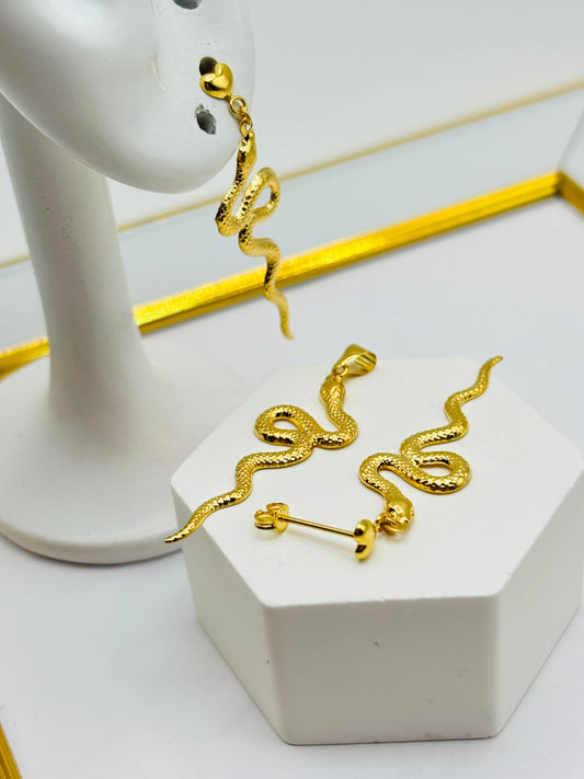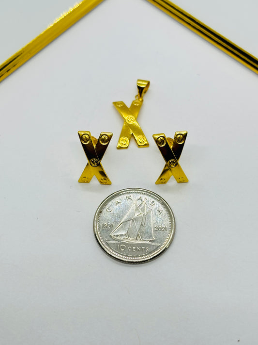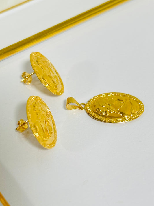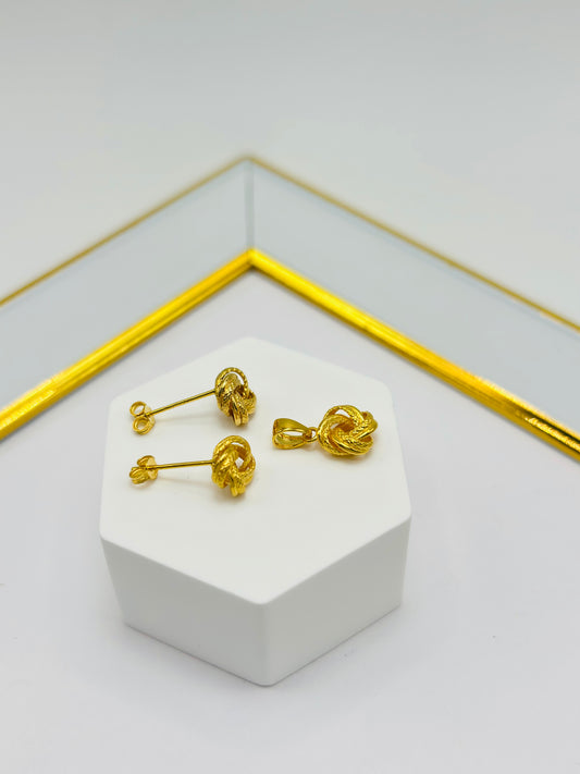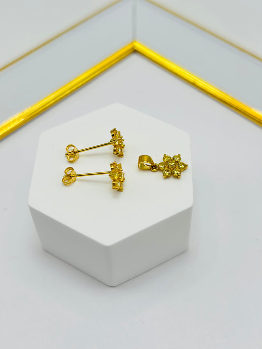 18K Gold Flower Stone Earrings and Pendant Set (Yellow)