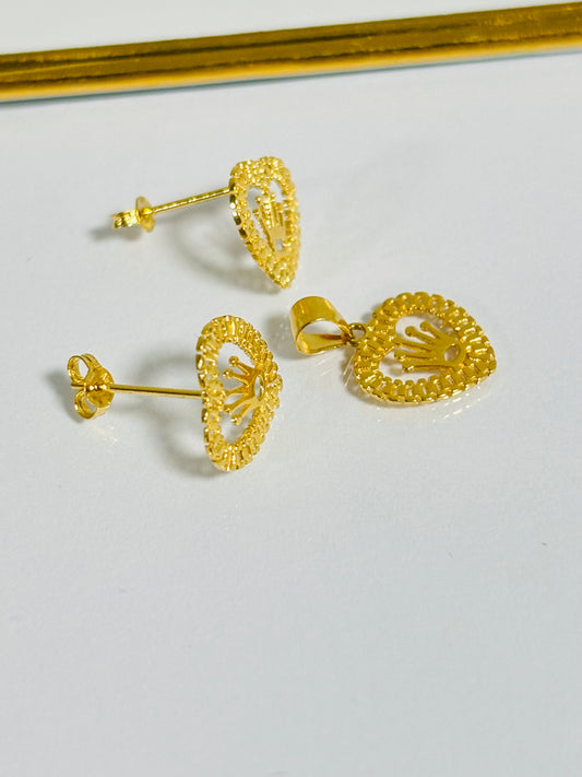 18K Gold Heart Earrings and Pendant Set Moissanite Diamond