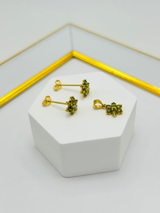 18K Gold Flower Stone Earrings and Pendant Set (Green)