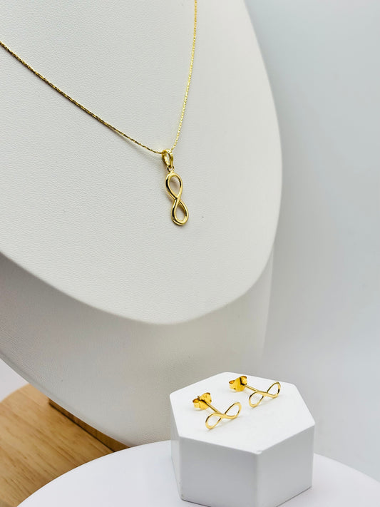 18K Gold Infinity Earrings and Necklace Set