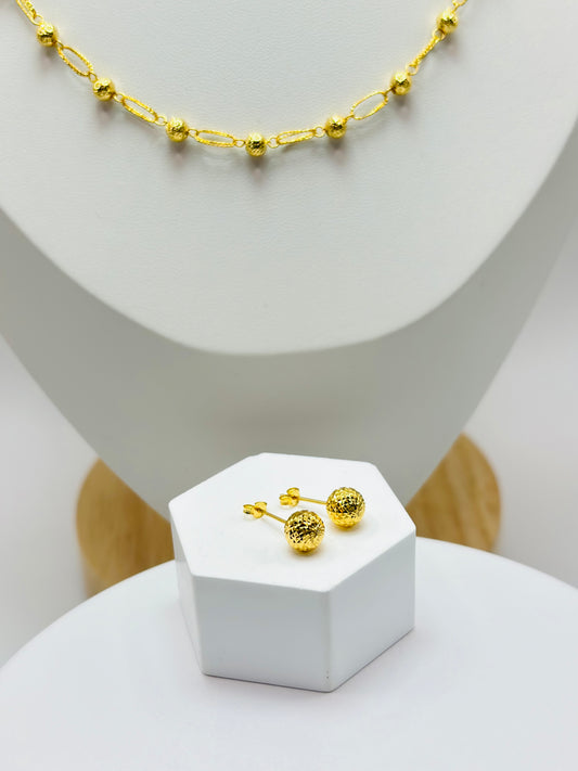 18K Gold Paperclip Diamond Cut Ball Necklace and Earrings Set