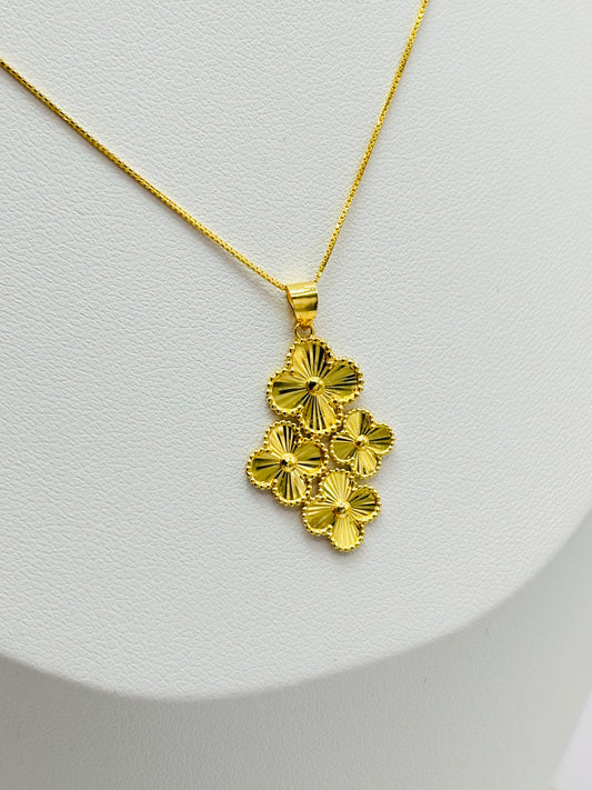 18K Gold Bamboo with Heart Pendant Necklace Set