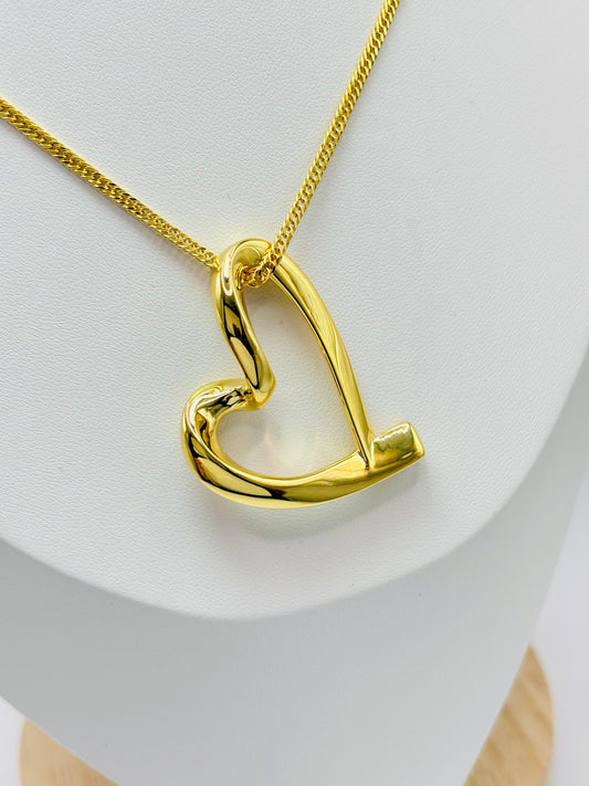 18K Gold Big Heart Moissanite Diamond Attached Necklace