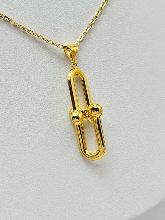 18K Gold Necklace with Hardware Pendant Set