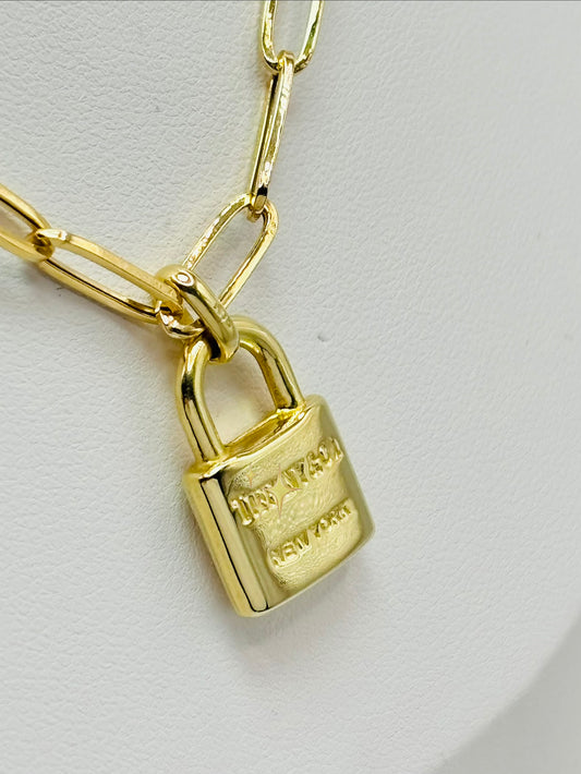 18K Gold Padlock Paperclip Necklace