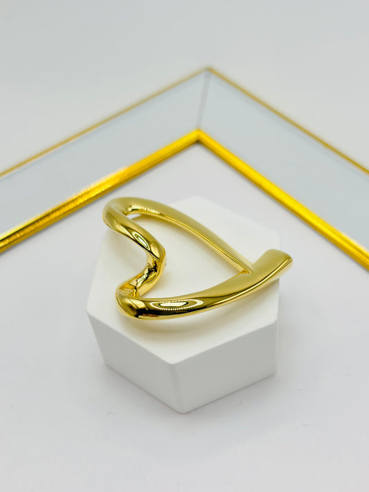 18K Gold Open Heart Pendant Chunky 30 mm