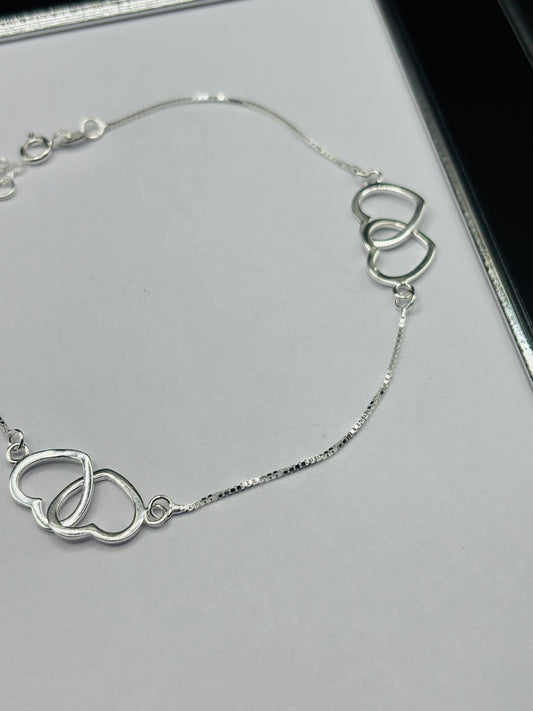 S925 Silver Double Heart Anklet