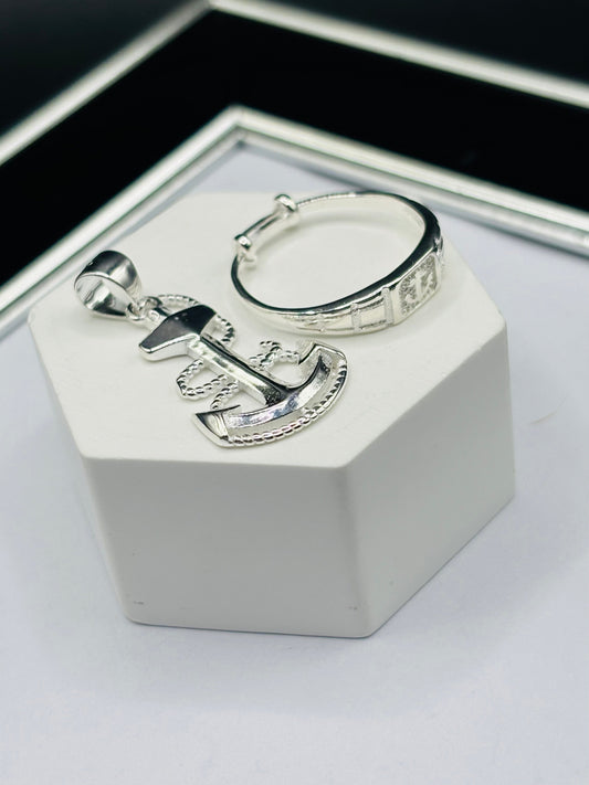 S925 Silver Anchor Ring and Pendant Kids Set