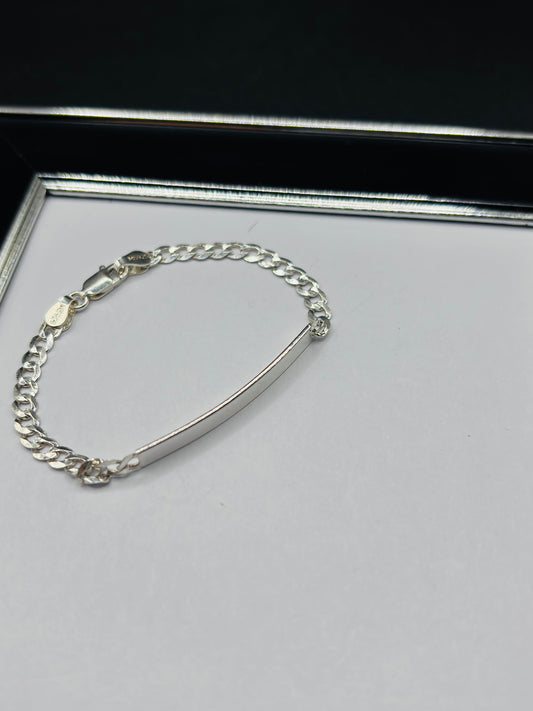 S925 Silver Name Flat Curb Kids Bracelet