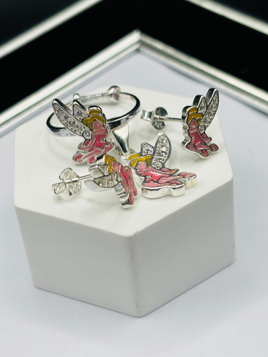 S925 Silver Fairy Ring, Earrings and Pendant Kids Set
