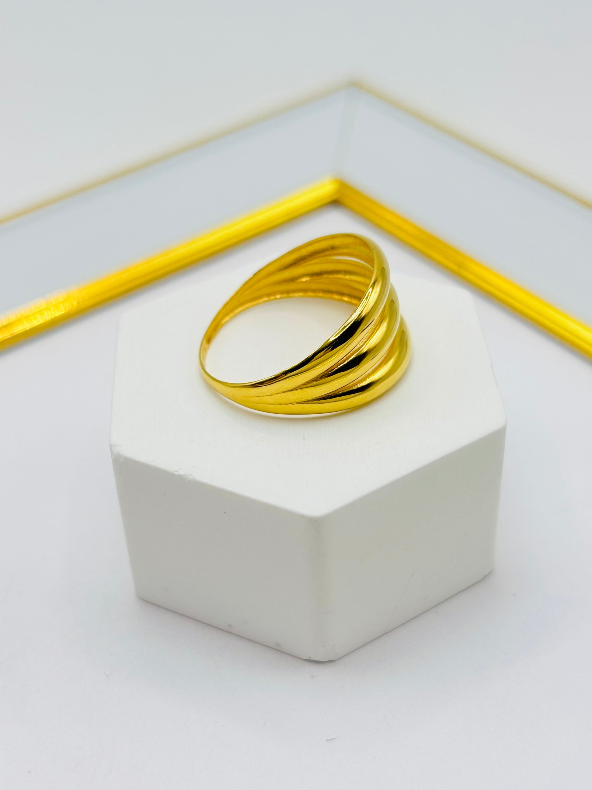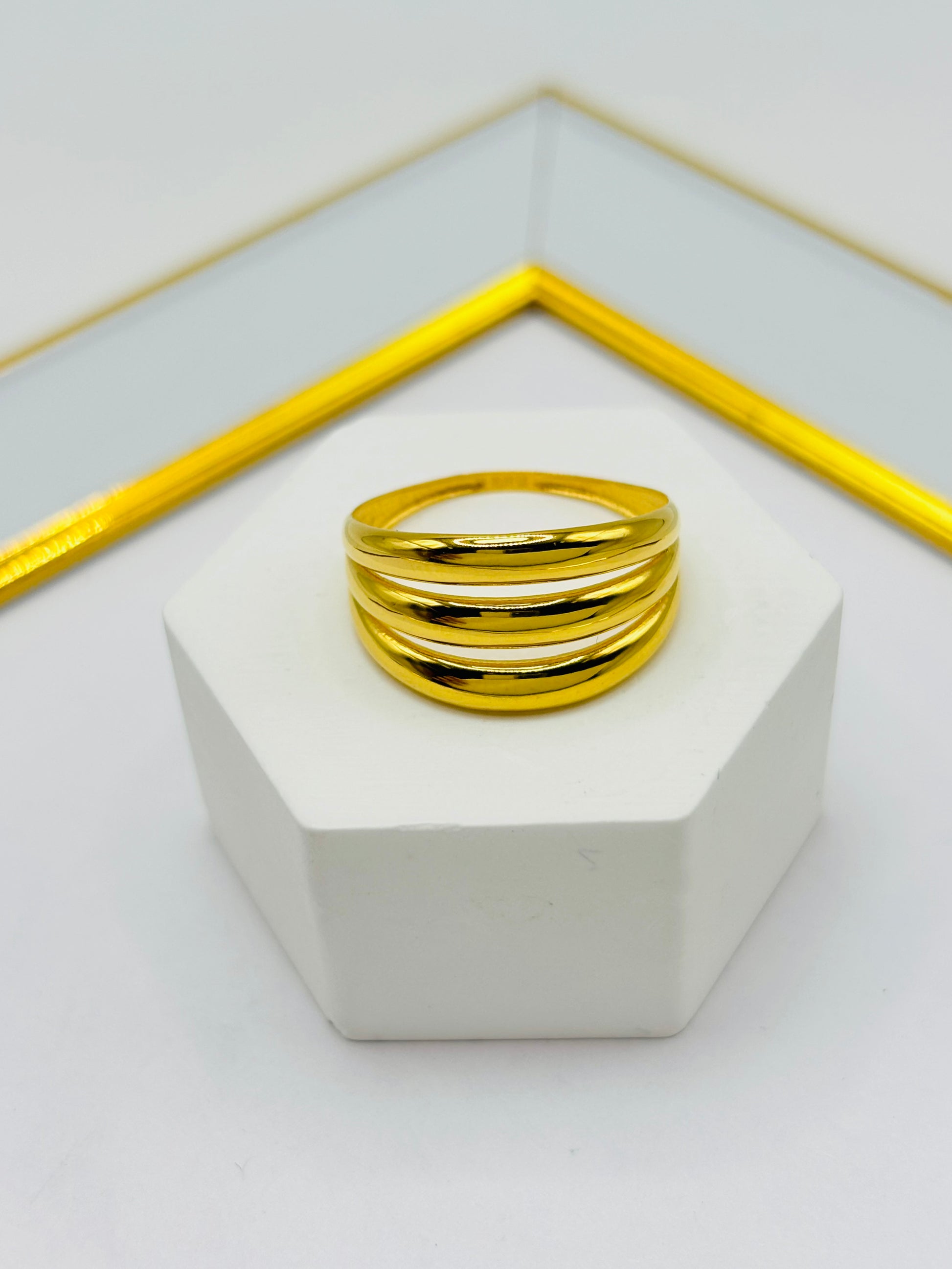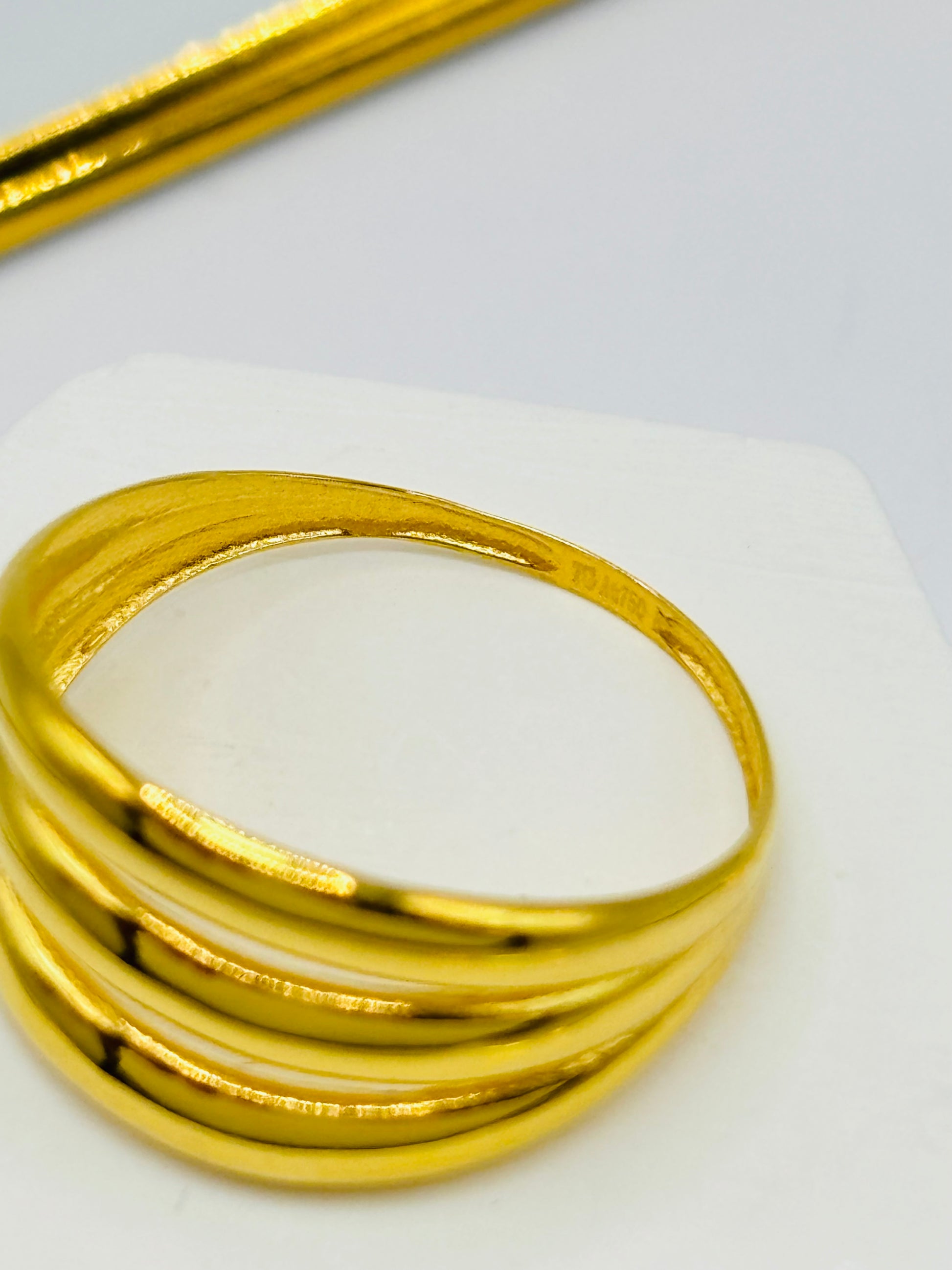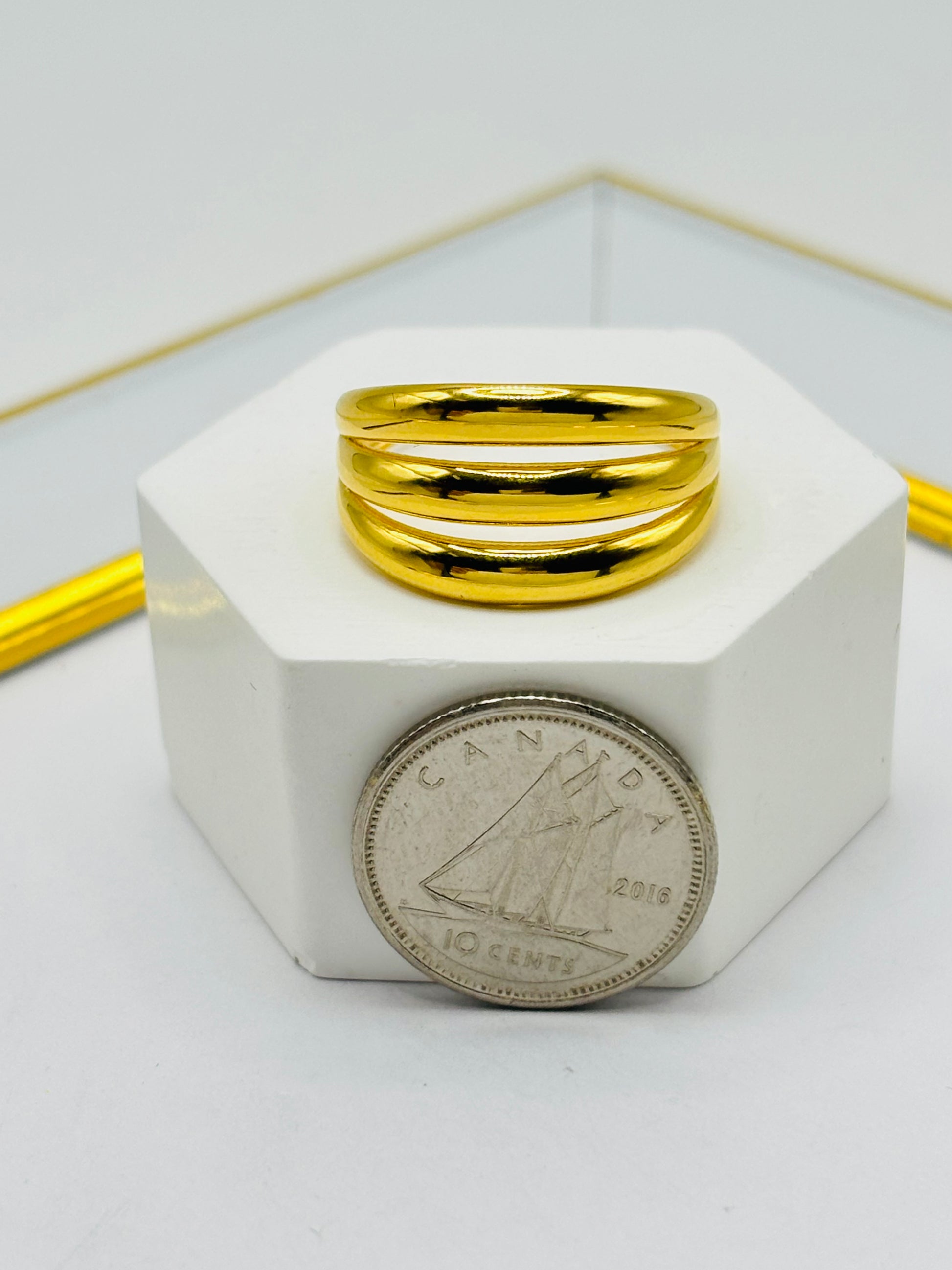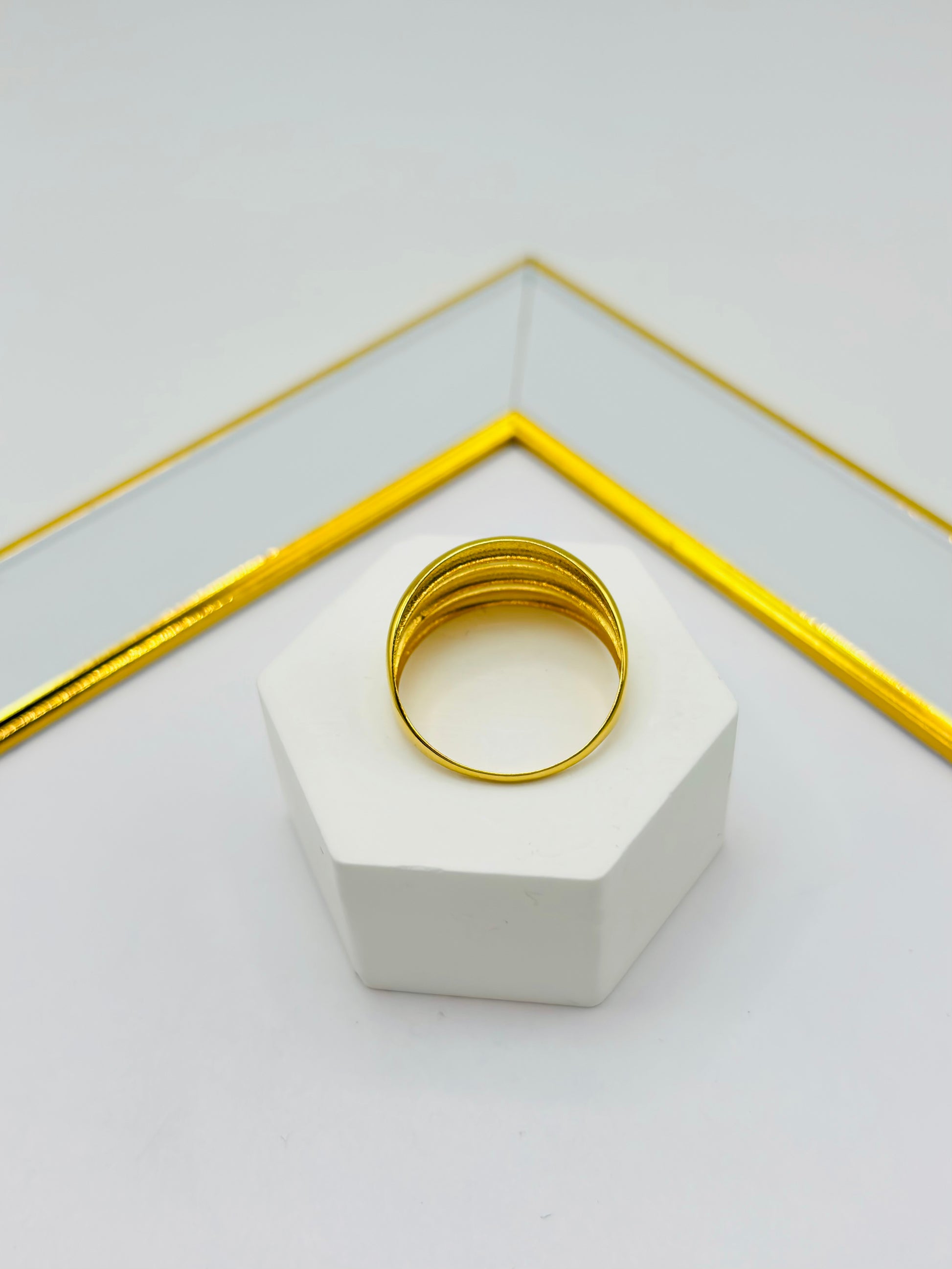 Elevate your jewelry collection with our exquisite 18K Gold 3 Layer Ring. Weighing a delicate 1.07–1.10 grams, this stunning piece features three distinct layers of pure 18K gold, creating a dimensional look that catches the light from every angle. The lightweight design ensures comfortable wear while making a bold statement for special occasions or adding a touch of luxury to your style.