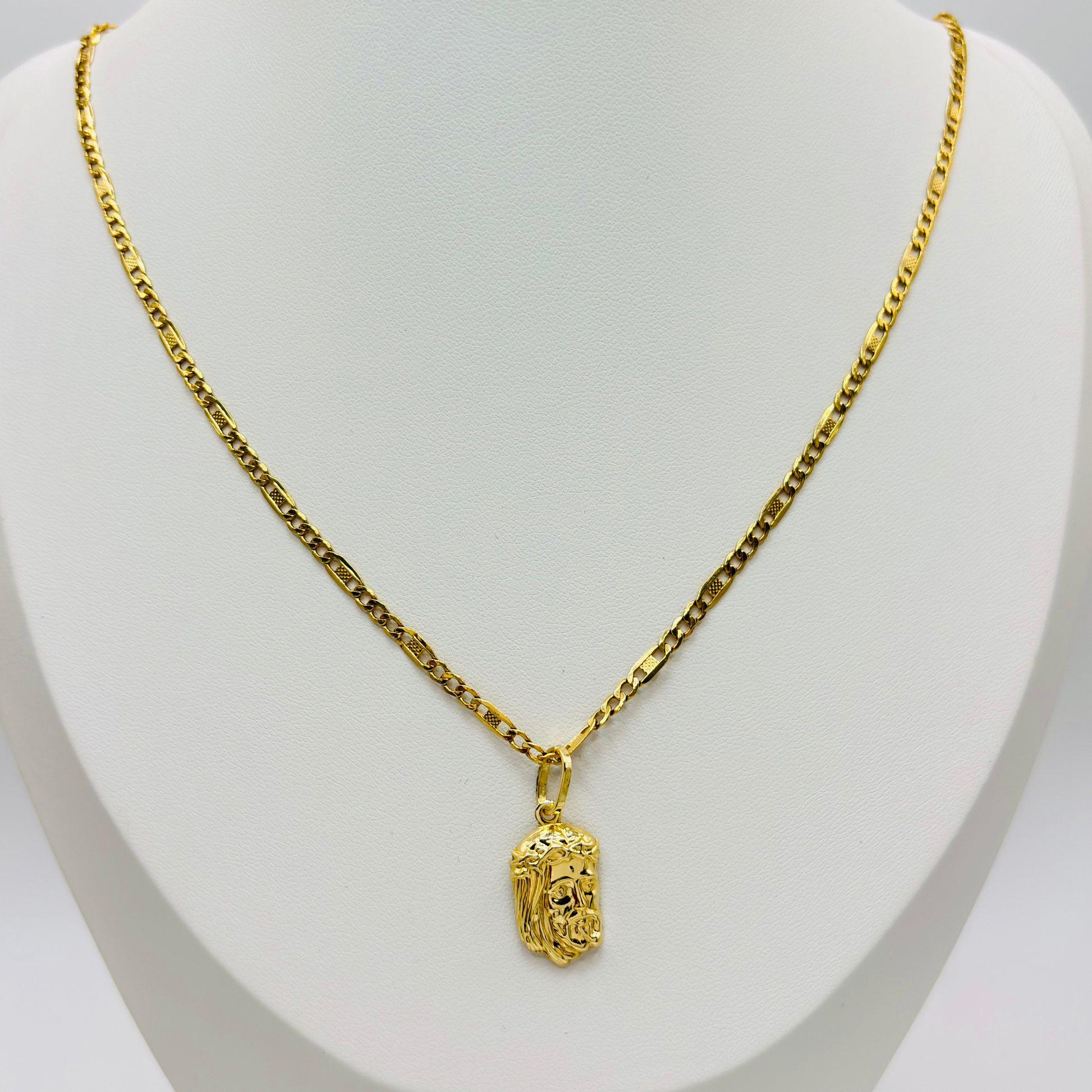 Elevate your style with this exquisite 18K Gold Anchor Chain paired with a finely crafted Jesus Face Pendant. Weighing 4.1 grams, this set combines timeless elegance with meaningful symbolism, making it a perfect statement piece for any occasion. Its design ensures lasting shine and wearability, allowing you to carry a symbol of faith with confidence and grace.