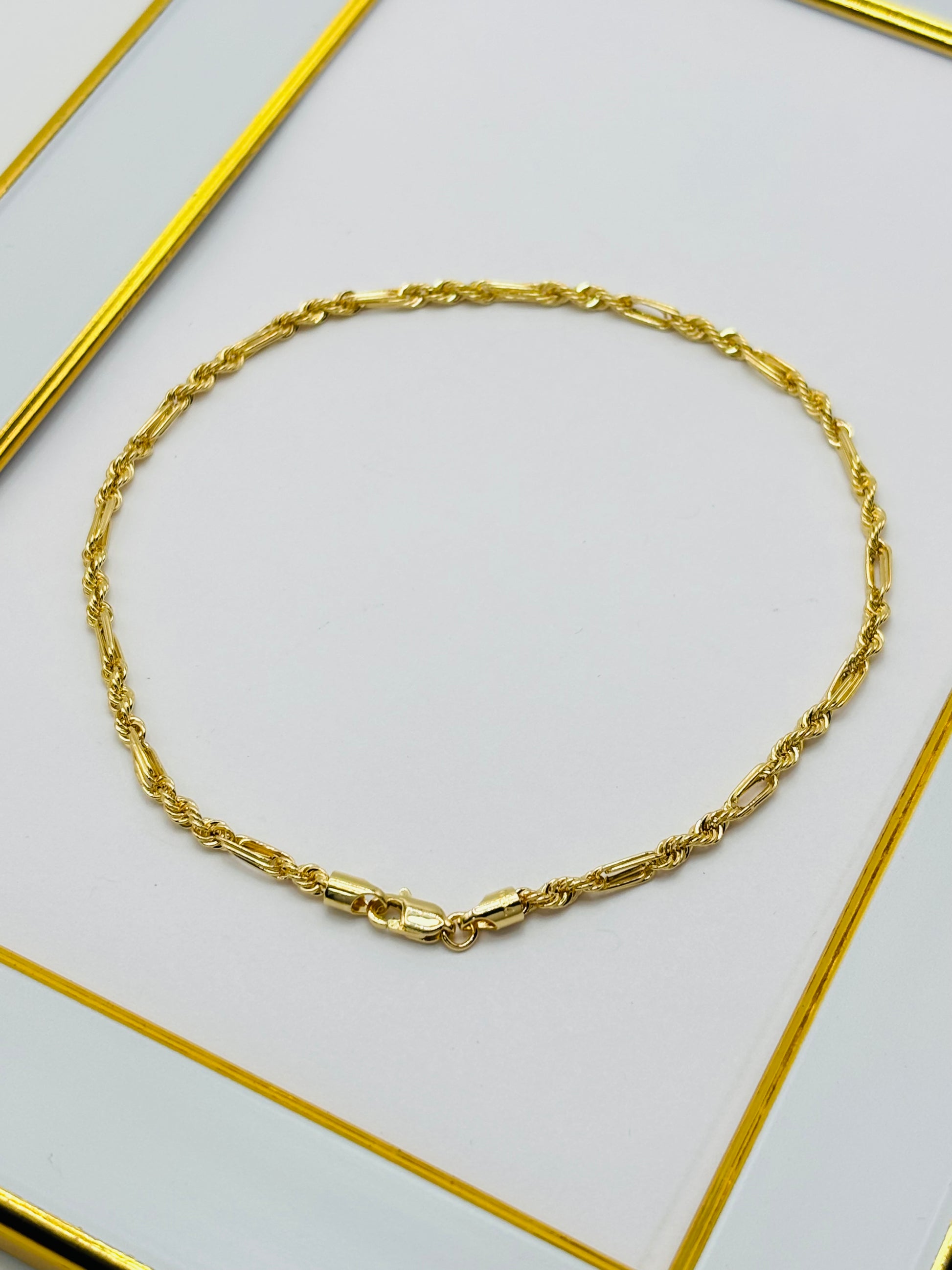 Elevate your style with this elegant 18K Gold Anklet, crafted to perfection with a weight range of 2.93 to 2.99 grams. Its refined design offers a subtle yet luxurious touch to any outfit, making it an essential accessory for those who appreciate timeless beauty. This anklet promises lasting shine and sophistication, creating a graceful statement with every step you take. Add a touch of pure elegance to your jewelry collection today.