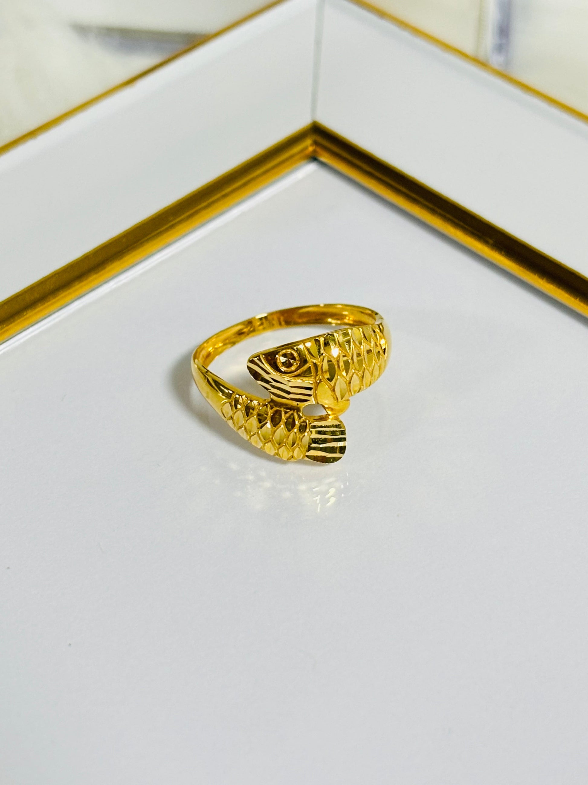 Crafted with expertise and precision, the 18K Gold Arrowana Fish Ring is a stunning piece of jewelry. estimated 1.6 grams made with high-quality 18K gold, this ring features a beautifully designed and detailed arrowana fish. Elevate your style and make a statement with this unique and elegant ring.