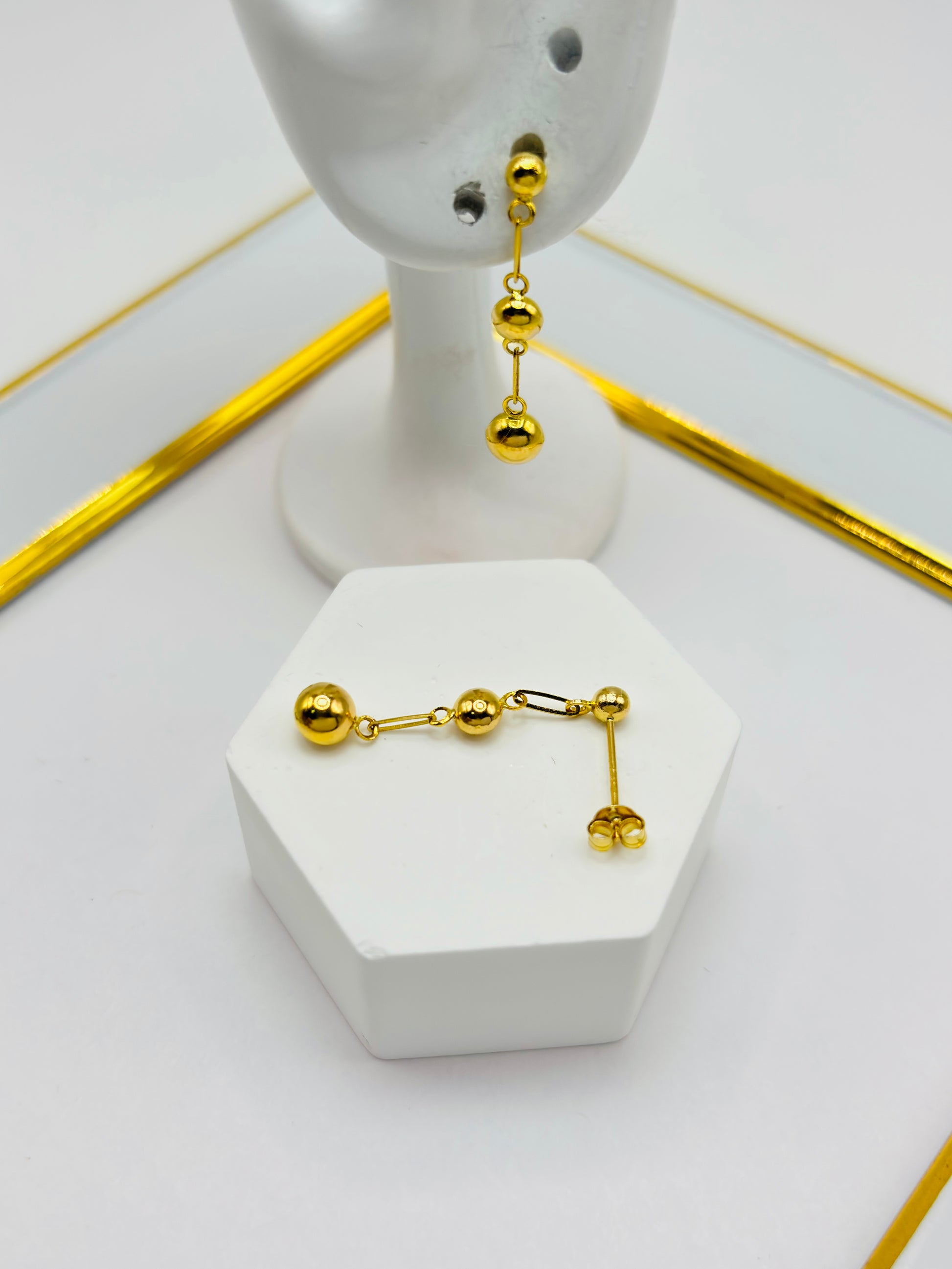Elevate your style with these 18K Gold Ball Dangling Earrings. Their elegant design adds a refined touch to any outfit, while the high-quality gold ensures lasting shine. Perfect for special occasions, these earrings effortlessly enhance your look with subtle movement and timeless sophistication.