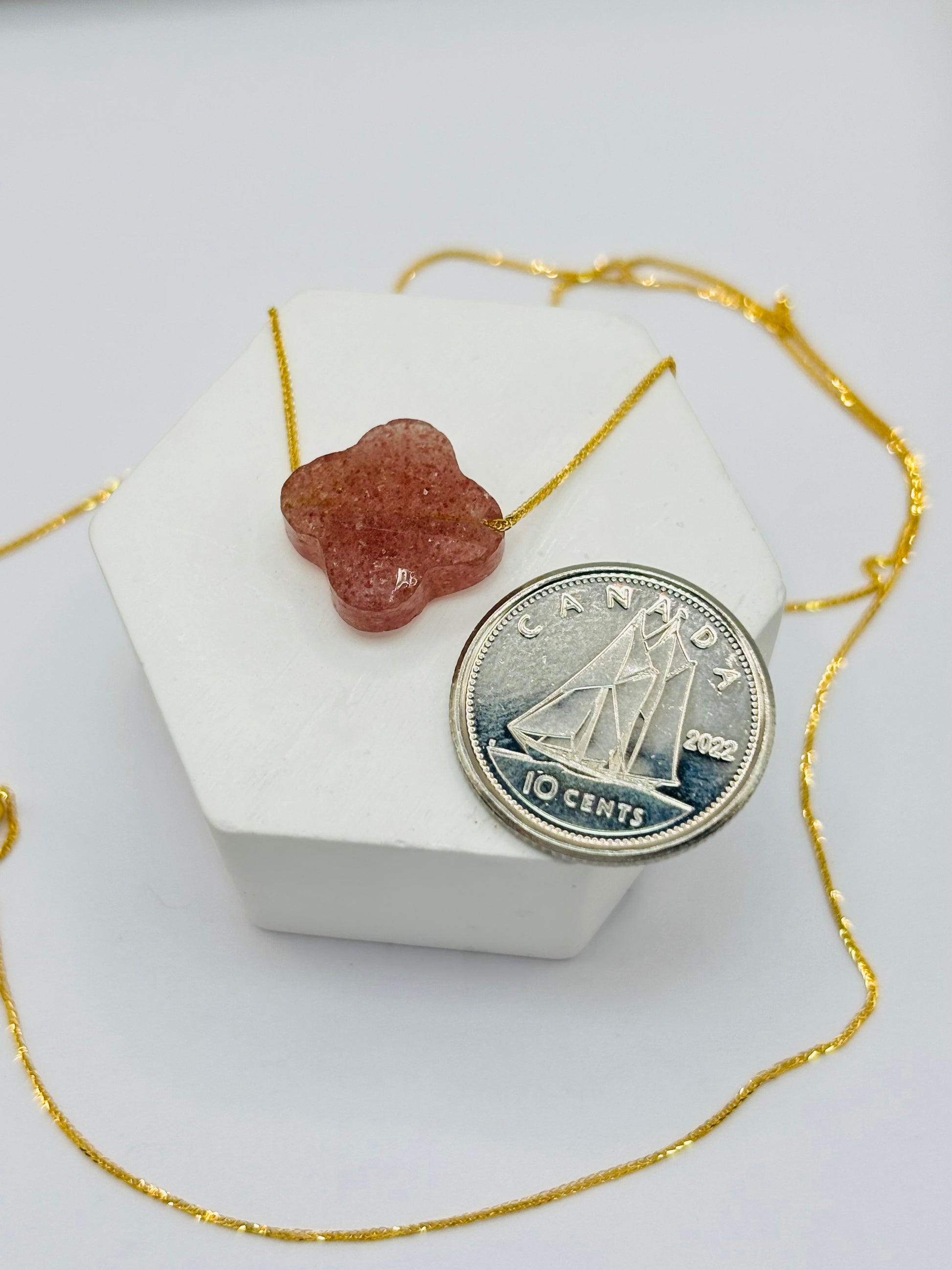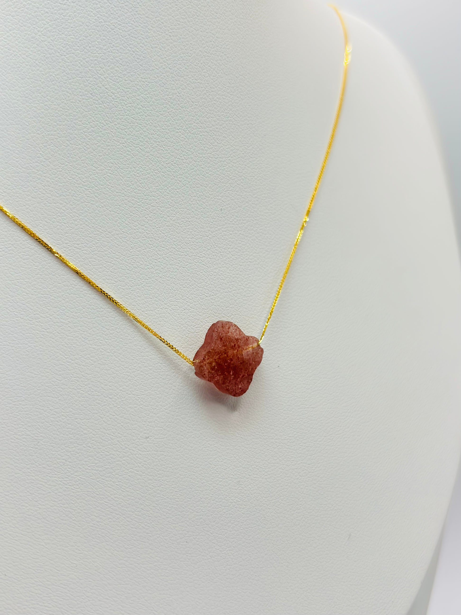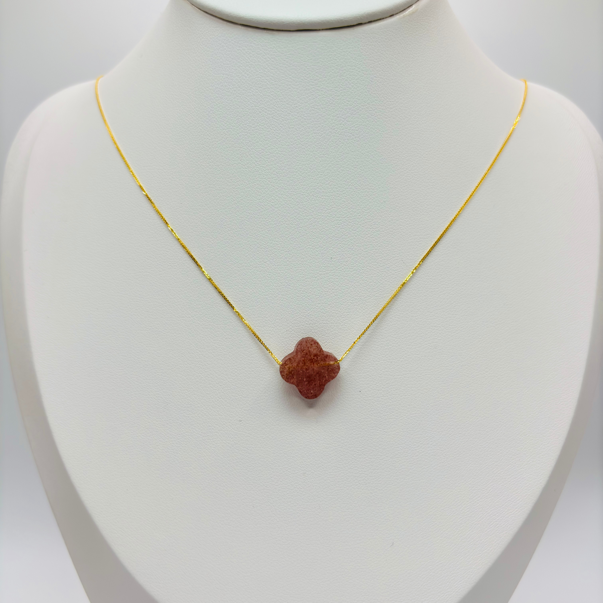 18K Gold Attached Necklace with a Pink Clover Stone
