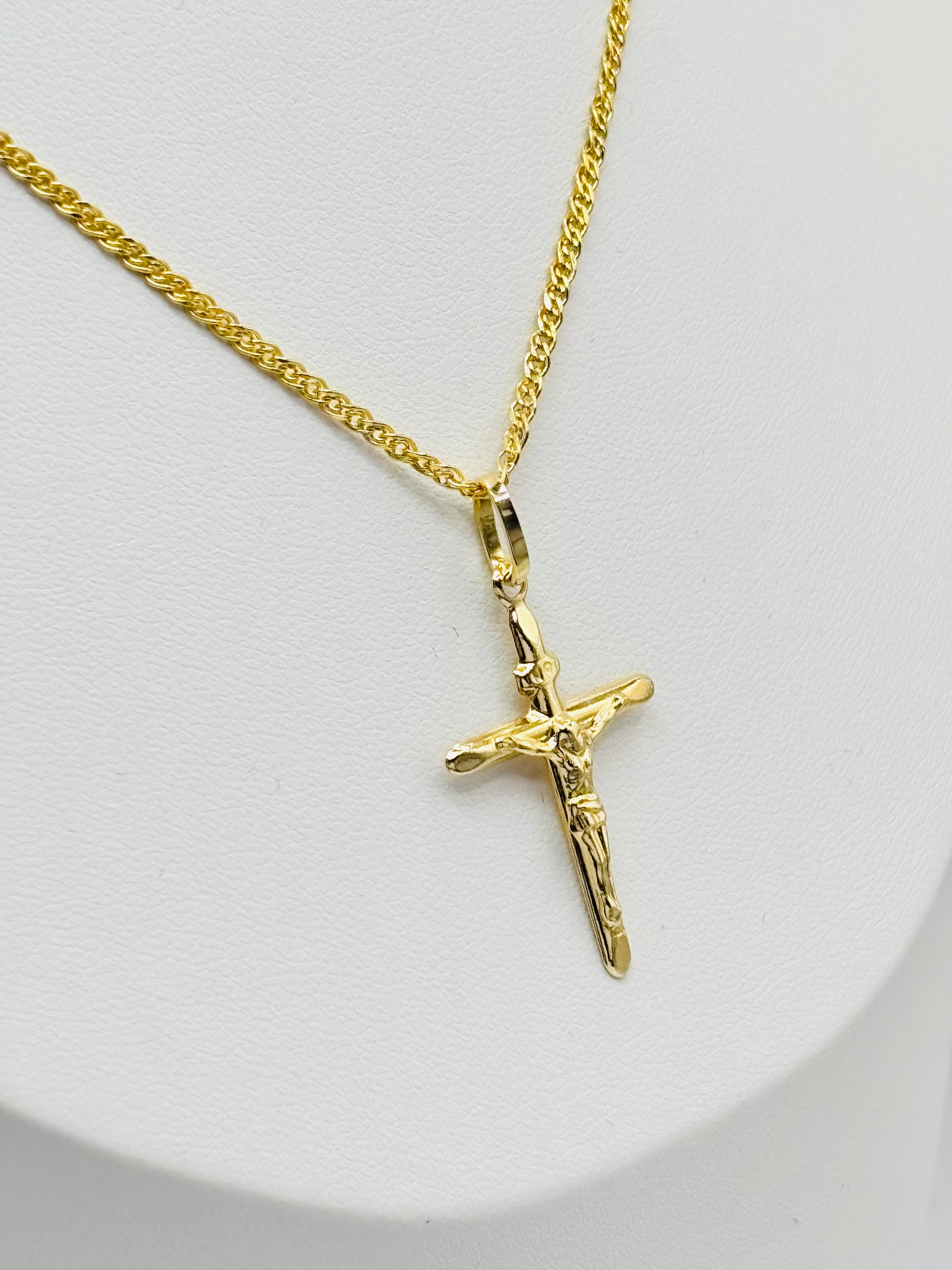 Elevate your style with this stunning 18K gold cross necklace, a timeless piece that seamlessly blends spiritual significance with sophisticated elegance. Crafted from genuine 18K gold, this necklace offers lasting luxurious finish that catches the light beautifully. The classic cross design makes a meaningful statement whether worn as a personal faith symbol or as a cherished fashion accessory. Perfect for layering or wearing solo, this versatile pendant complements any wardrobe and serves as an ideal gift for someone special. Invest in a piece that transcends trends and becomes a treasured heirloom.
