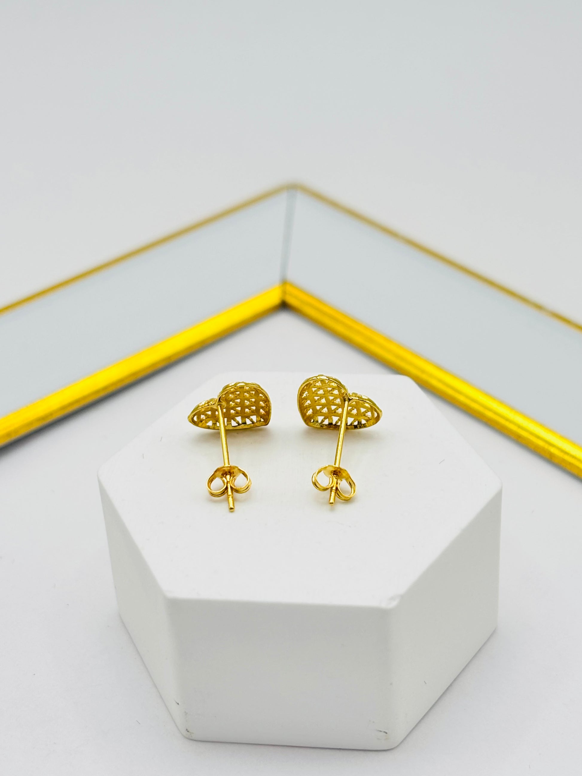 18K Gold Heart Basket Earrings