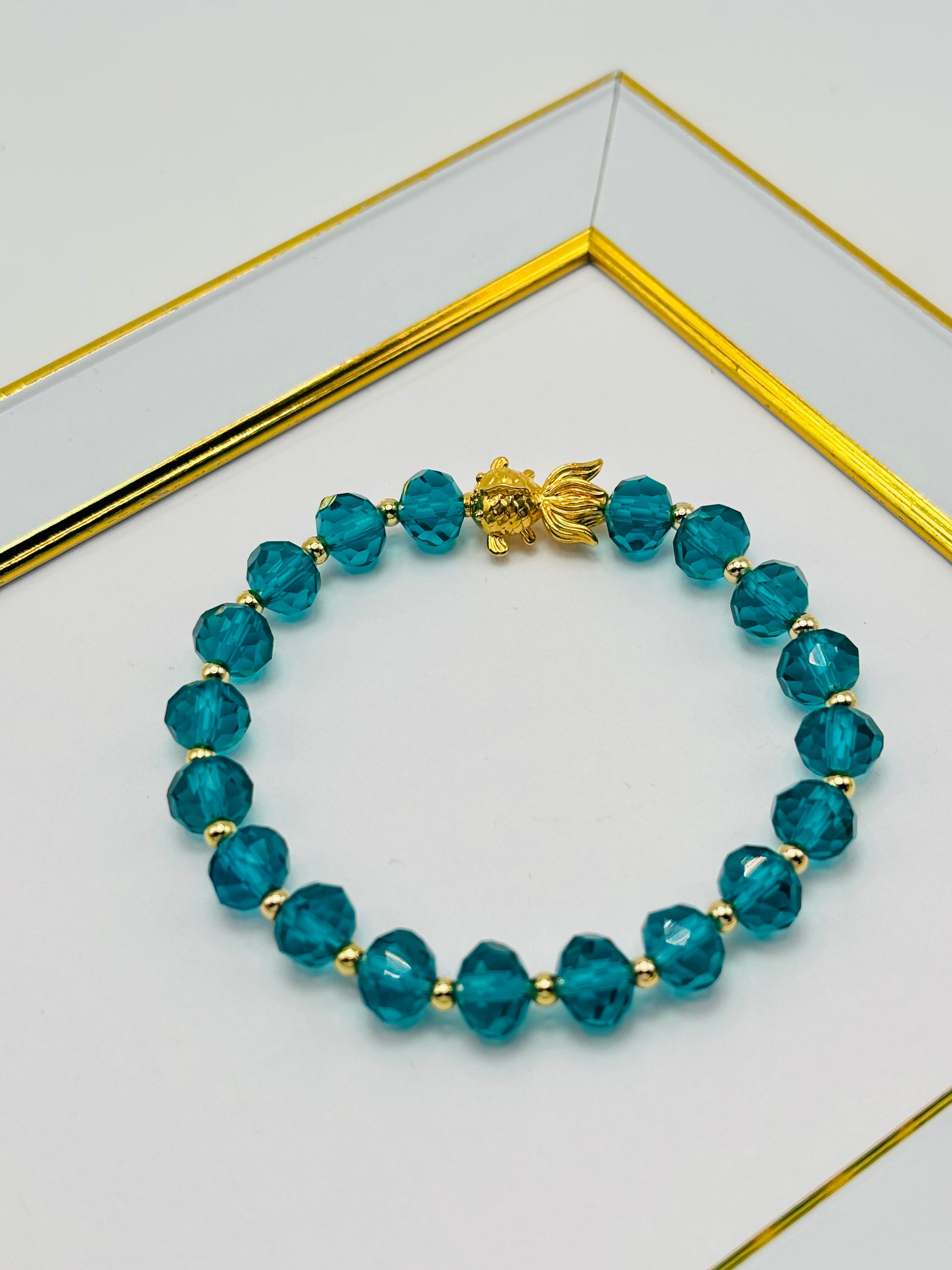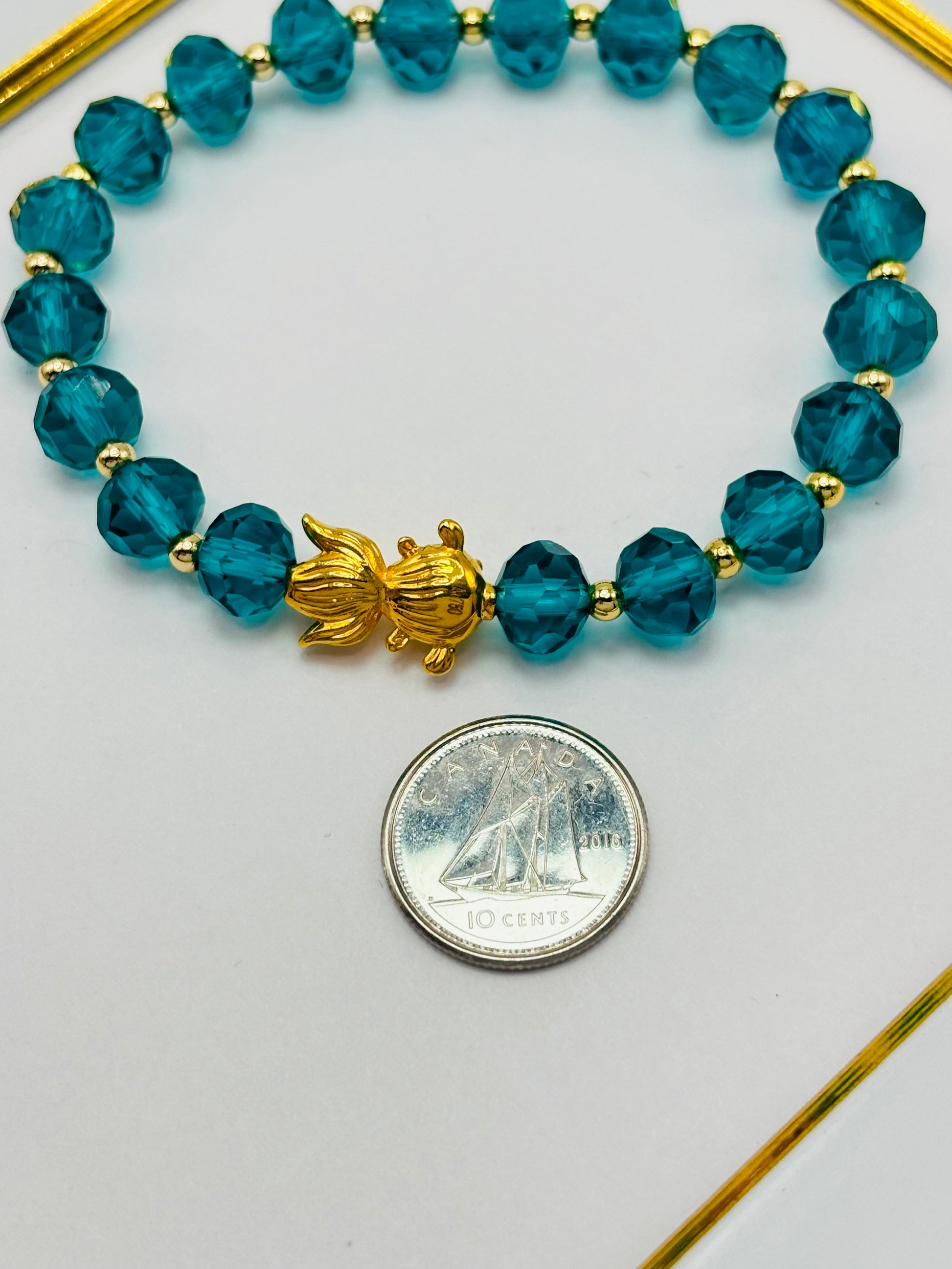 This stunning 18K Gold Lucky Koi Fish Bracelet brings both fortune and style to the wearer. Koi Fish is the only thing made of 18k gold. The hollow design features the legendary Koi fish symbol, known for bringing wealth and abundance. With its intricate detailing and striking gold finish, this bracelet is sure to bring luck and compliments. It's important to handle this carefully because it's hollow and we don't recommend pinching it.