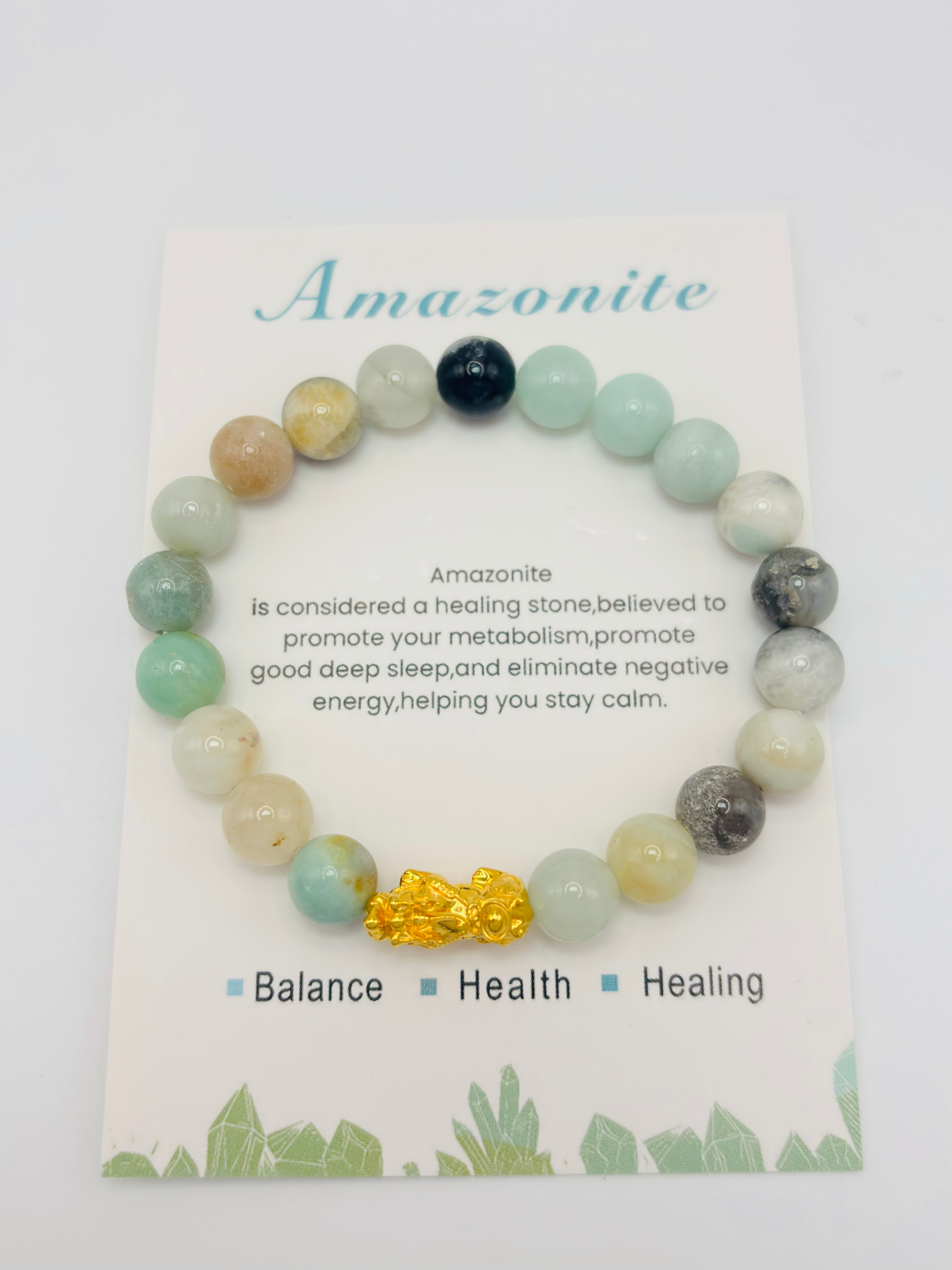 18K Gold Lucky Piyao/ Pi Xiu Amazonite Stone ( Hollow Empty Inside) Medium Size