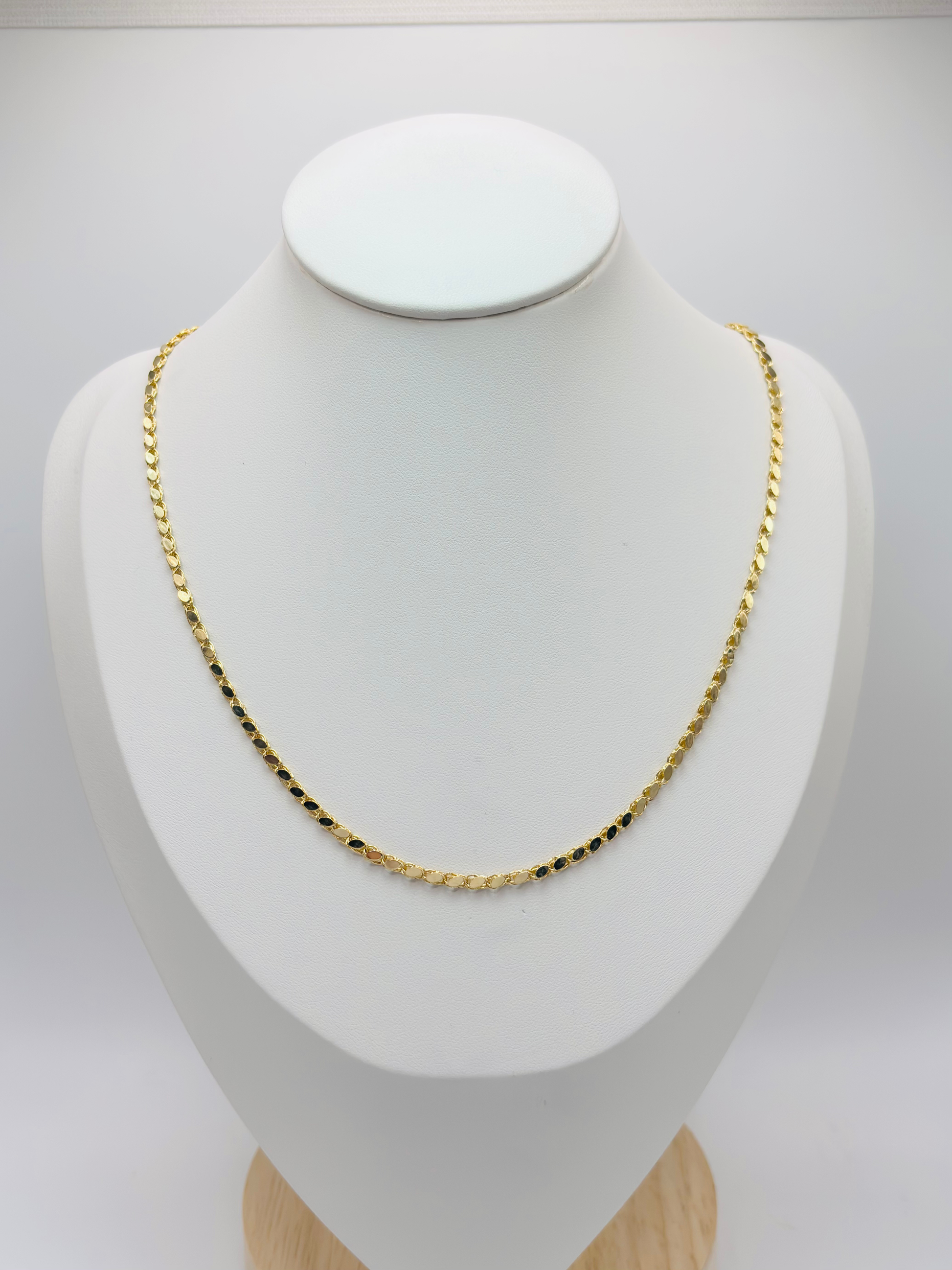 Elevate your jewelry collection with this exquisite 18K Gold Slim Damascus Chain. Weighing just 4.10 grams, this delicate piece showcases the timeless beauty of Damascus craftsmanship with its distinctive interlocking pattern. The slim profile makes it versatile enough to wear solo or layer with other pieces, while the rich 18K gold ensures lasting brilliance. Perfect for those who appreciate refined elegance and quality craftsmanship, this chain is an investment in sophisticated style that transcends trends.