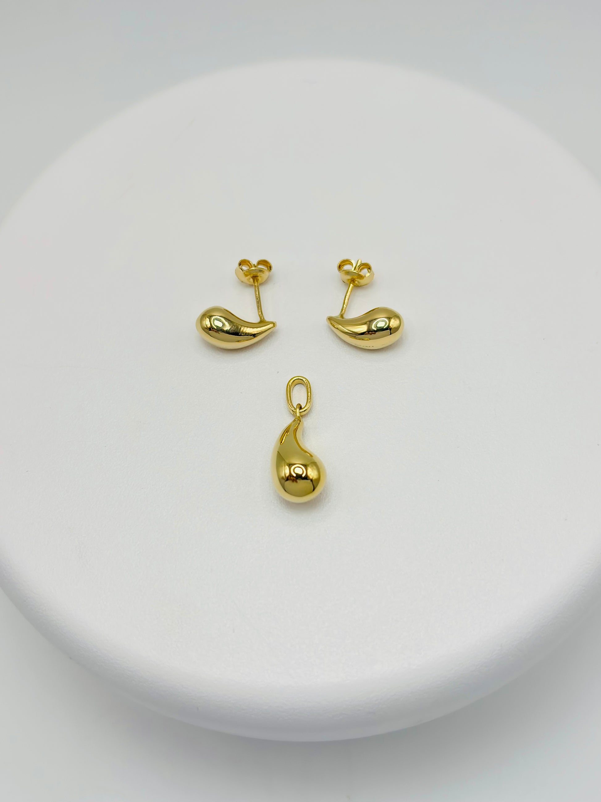 18K Gold Teardrop Earrings and Pendant Set