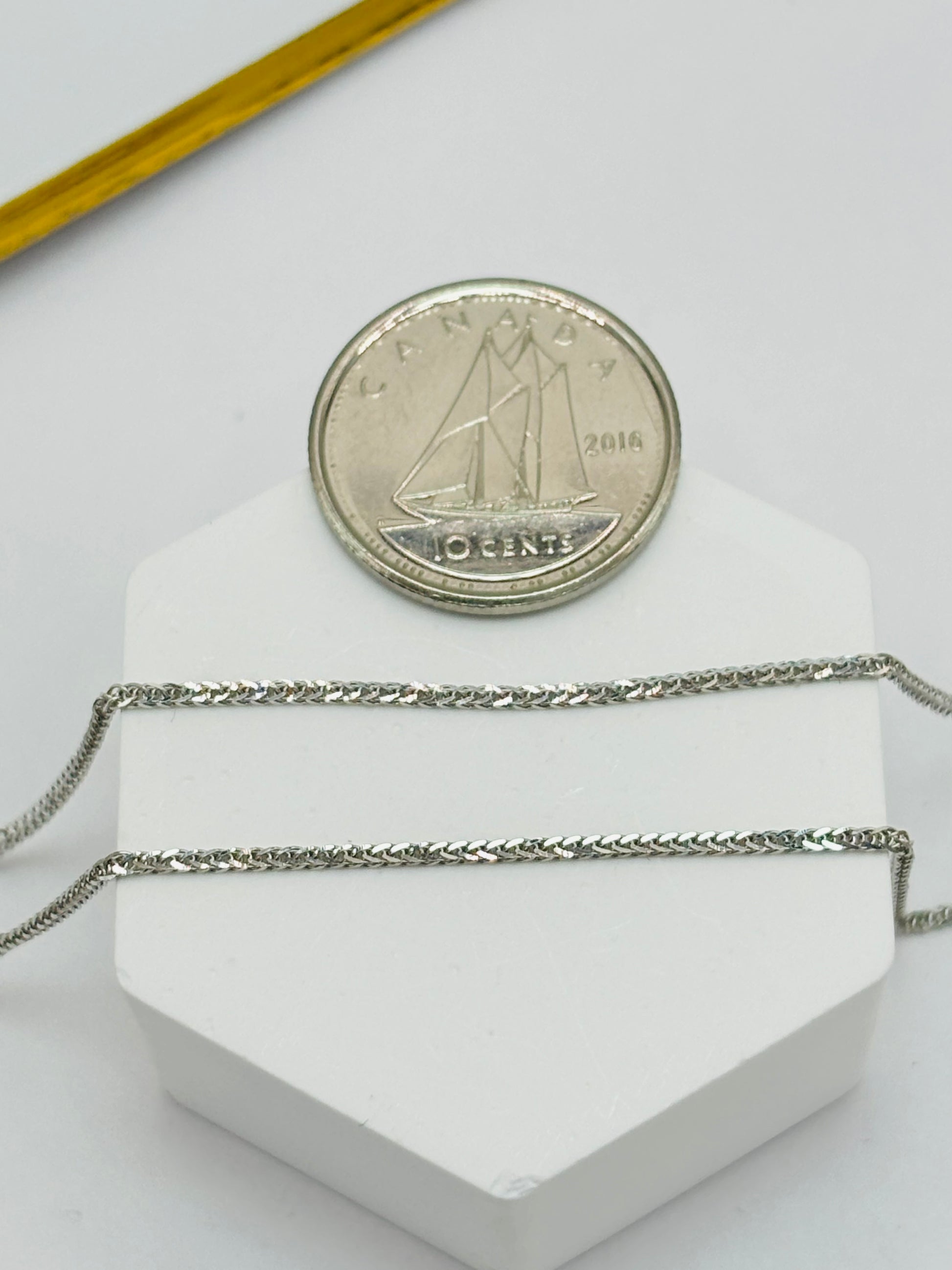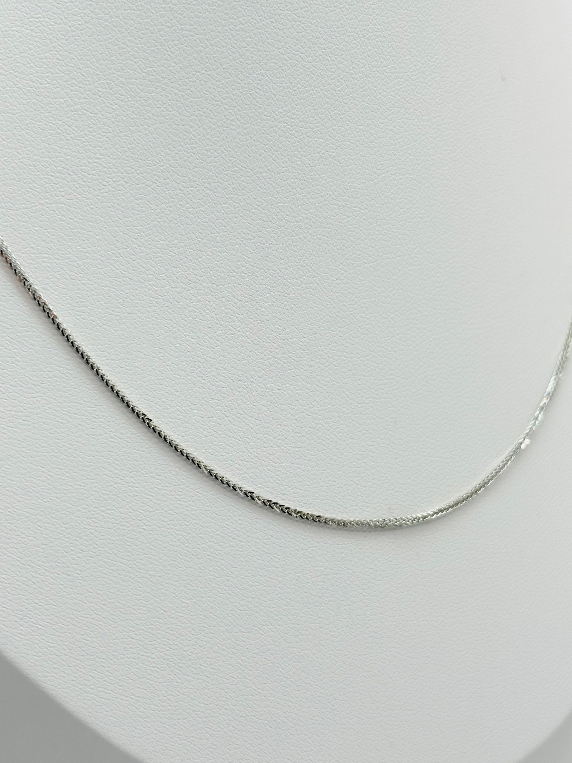 This 18K White Gold Foxtail Chain elegance in a sleek design that suits any style. Weighing between 1.52 to 2.34 grams, it offers a lightweight yet substantial feel, perfect for special occasions. The intricate foxtail pattern adds a refined texture, making it a versatile accessory that enhances any outfit with subtle sophistication.