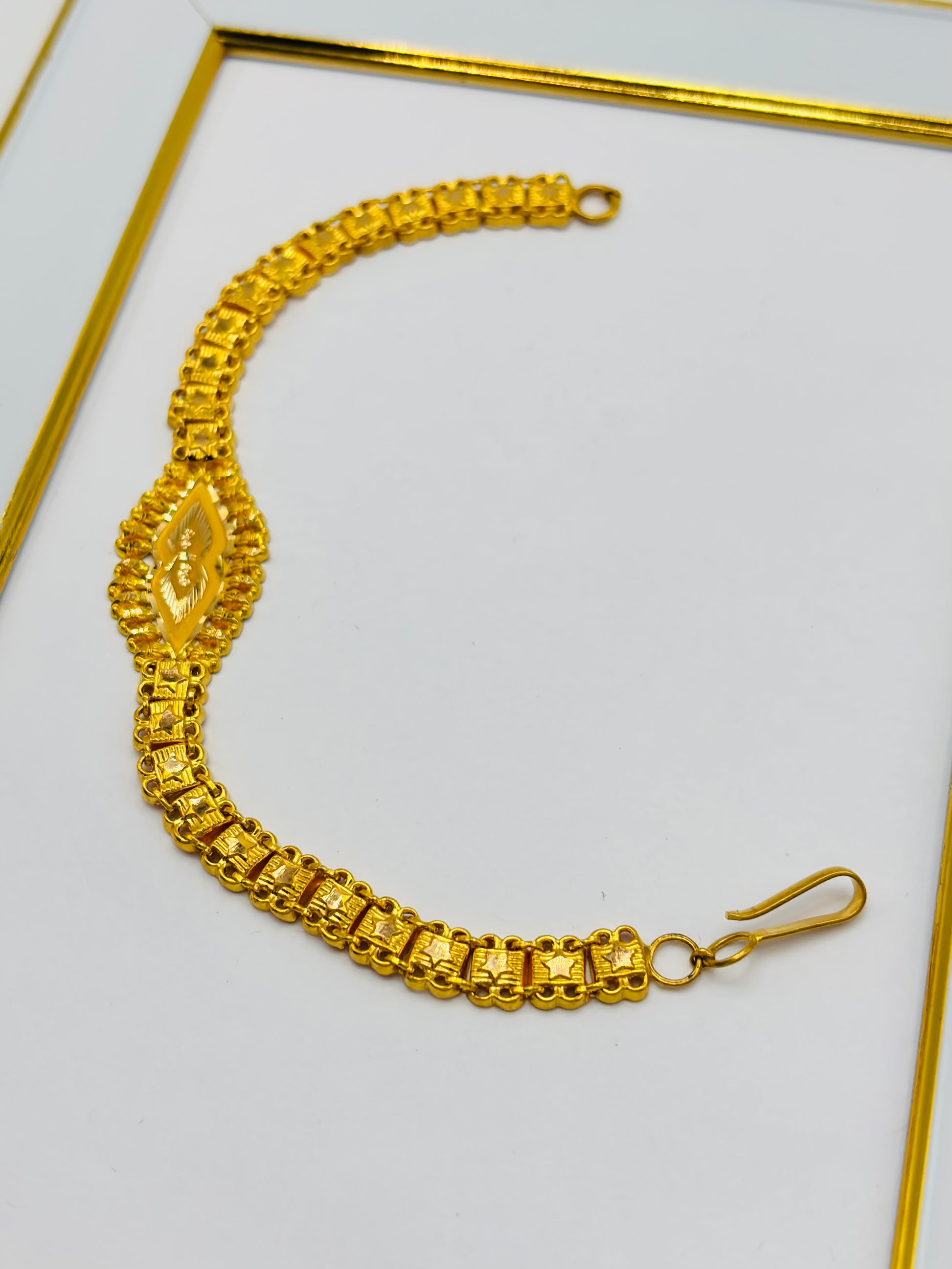 Elevate your jewelry collection with this exquisite 22K Gold Bracelet, a timeless piece crafted from premium gold. Weighing 6.37 grams, this bracelet offers substantial quality and authentic luxury that speaks to your refined taste. The high gold purity ensures lasting brilliance and durability, making it an investment piece you'll treasure for years. Perfect for special occasions elegance, this bracelet complements any style while maintaining its radiant glow. Whether you're treating yourself or selecting a meaningful gift, this 22K gold bracelet delivers sophistication and enduring value.