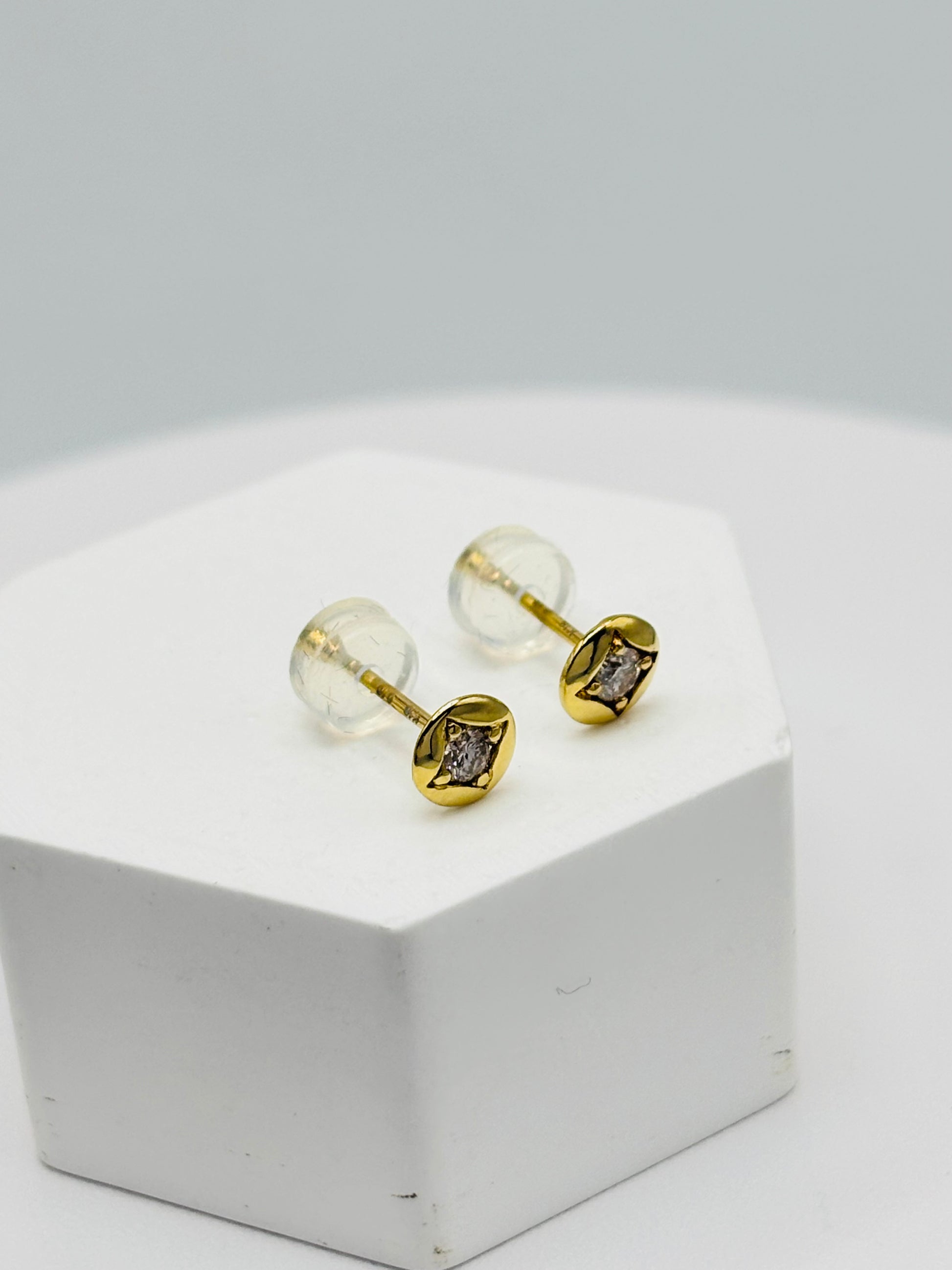 K18 Japan Gold Circle Natural Diamond Earrings 0.20ct