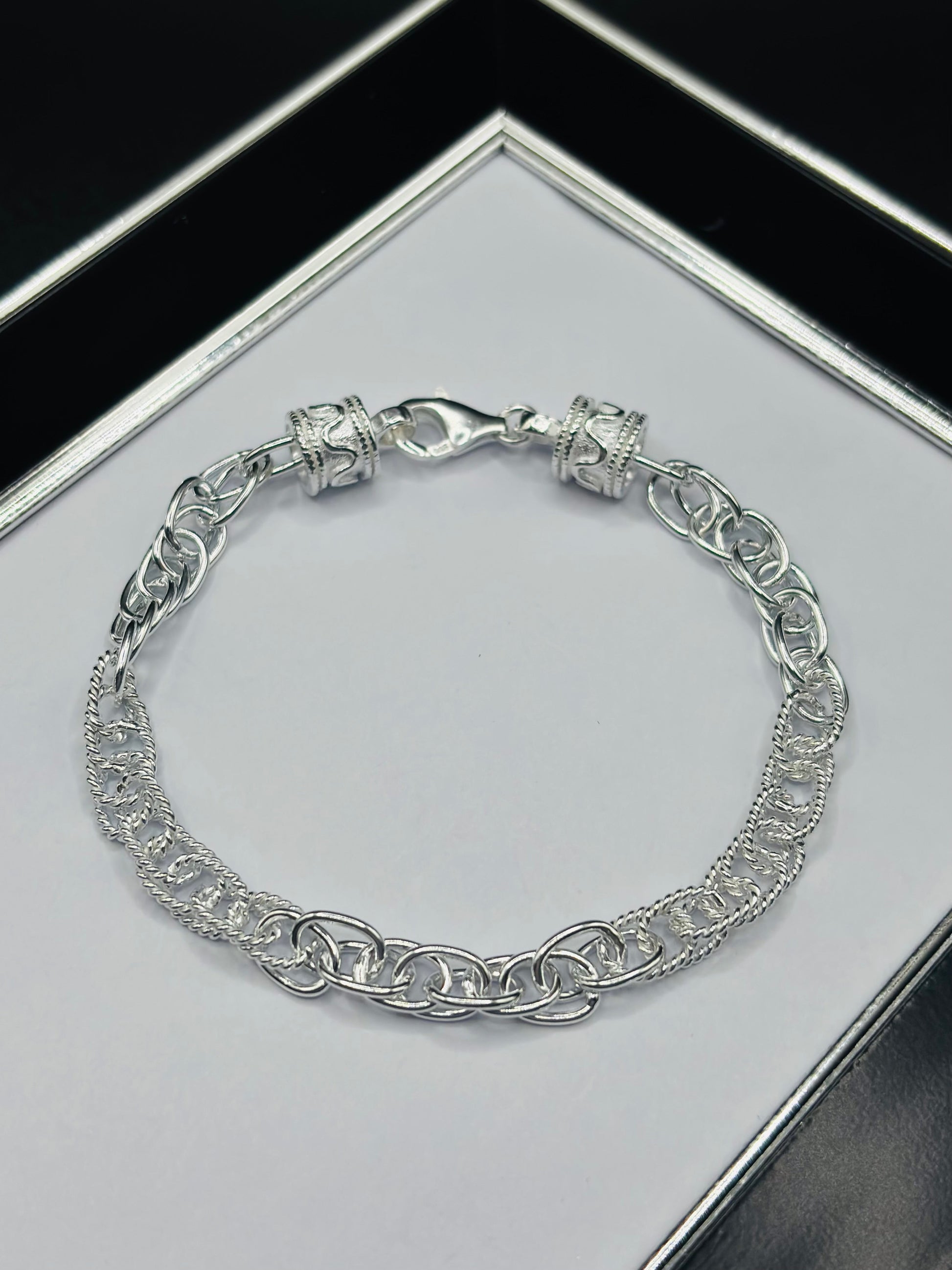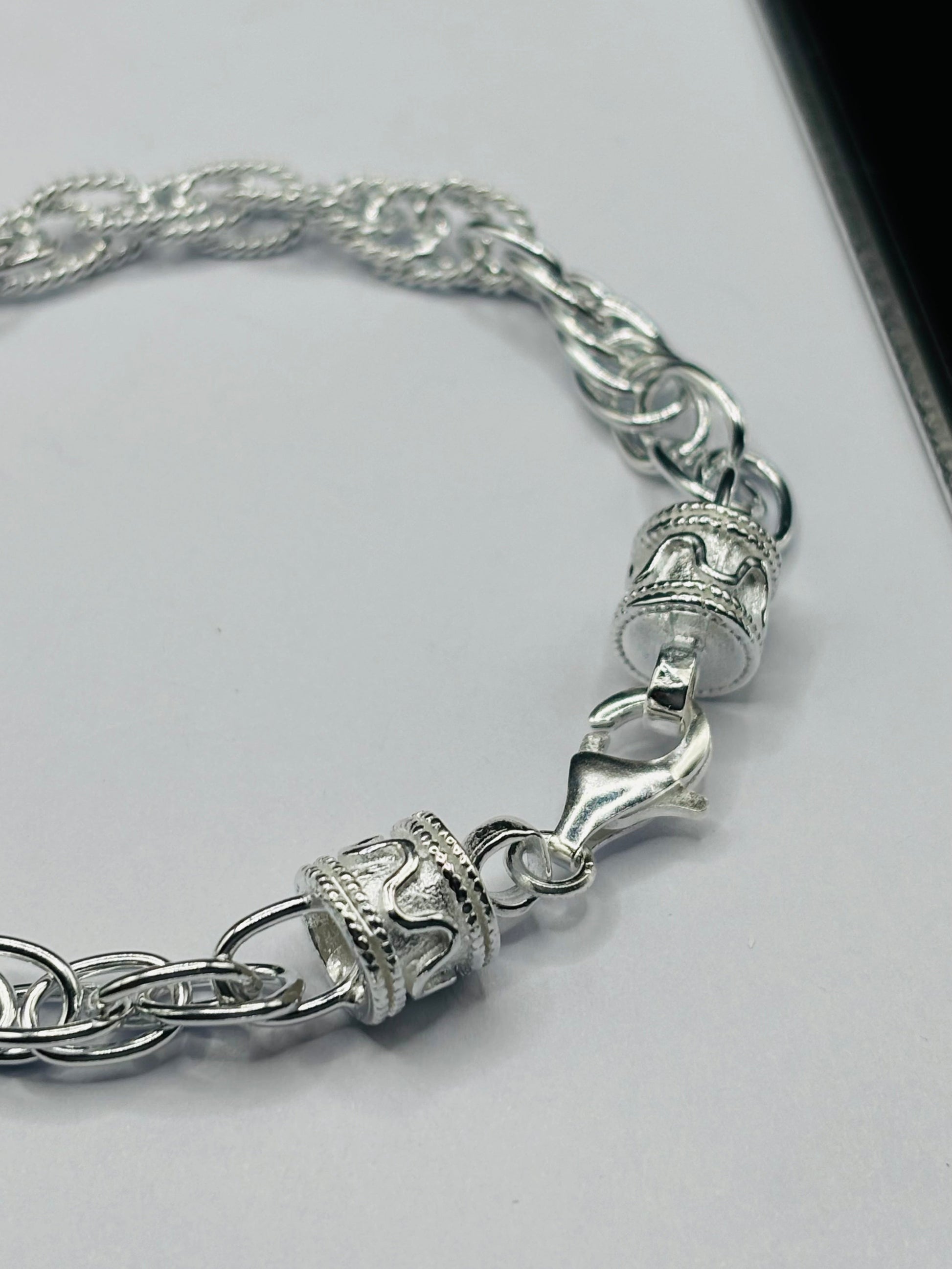 Crafted from sterling silver (S925), this double bracelet combines refined elegance with versatile styling. The dual-strand design offers sophisticated layering possibilities, whether worn stacked for impact or separated for understated grace. Sterling silver's timeless appeal ensures durability and a lustrous finish that develops character with wear. Perfect for those who appreciate quality craftsmanship and the enduring beauty of genuine silver jewelry.
