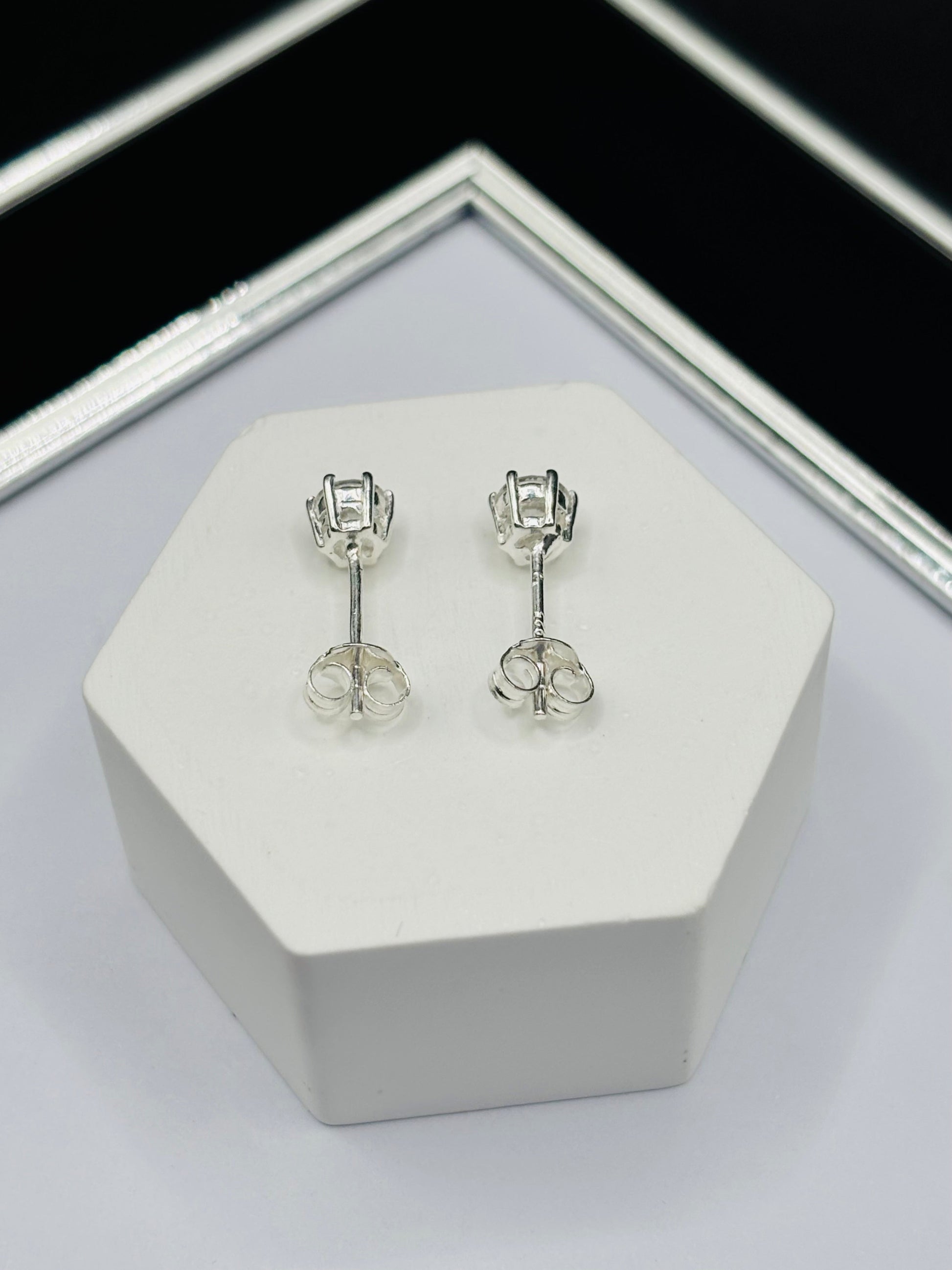 S925 Silver Round Stone Earrings 4.8 mm